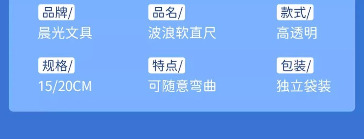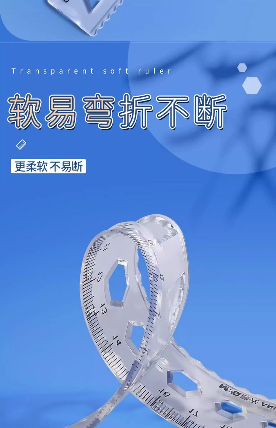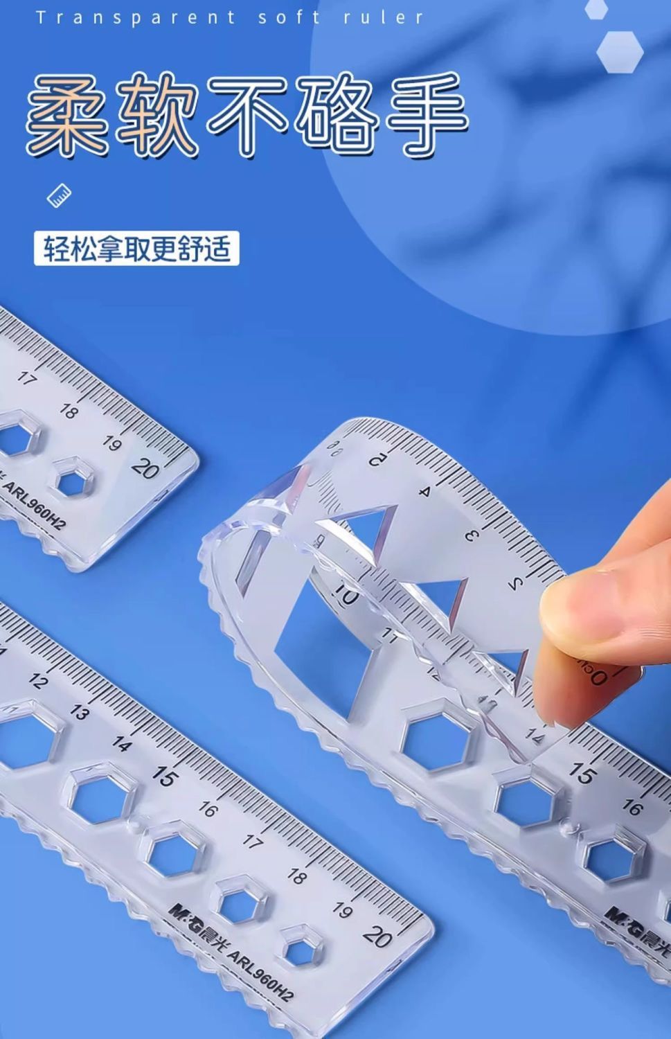 晨光透明安全不断软直尺15/20CM尺子学生考试波浪尺绘图测量软尺