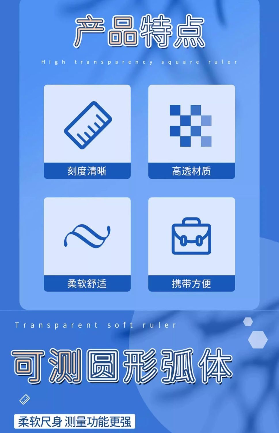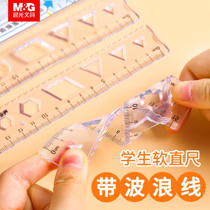 晨光波浪软尺20cm可弯曲不易断小学生多功能透明直尺波浪线绘画尺