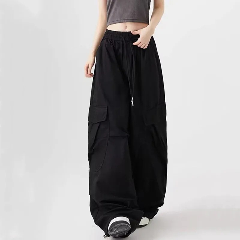 薄いアメリカンインブラックオーバーオール男性と女性のための巾着デザインカジュアルパンツルーズワイドレッグパンツジャズダンスパンツ