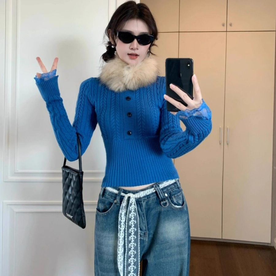 2025新款秋冬辣妹修身麻花内搭收腰短款针织毛衣女