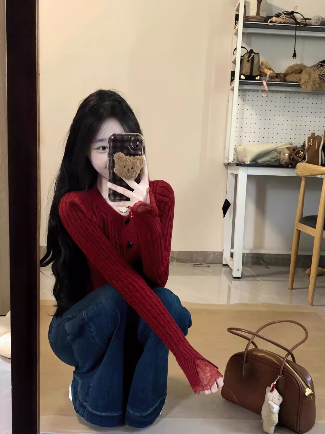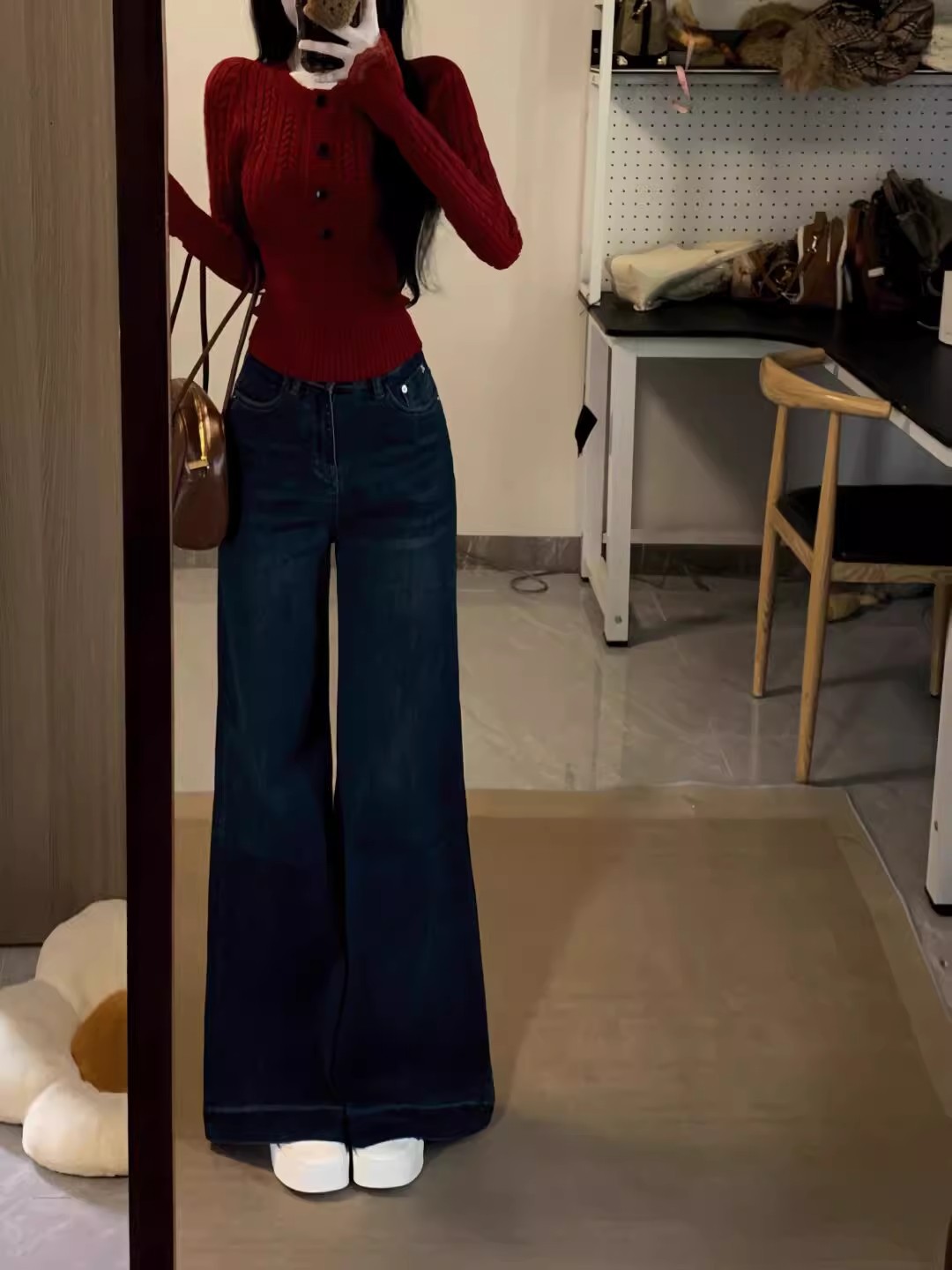 韩系修身麻花半开领红色毛衣女秋冬季新款简约打底针织衫