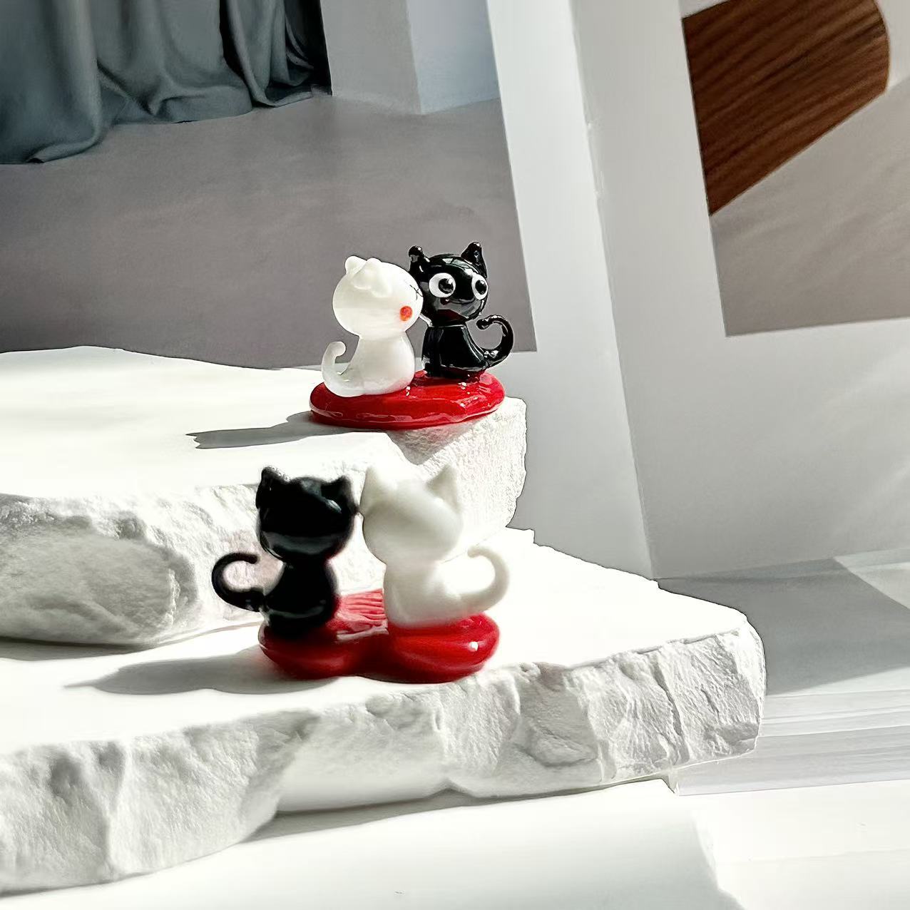 治愈系可爱黑白琉璃小猫创意DIY爱心底座玻璃小动物桌面居家摆件