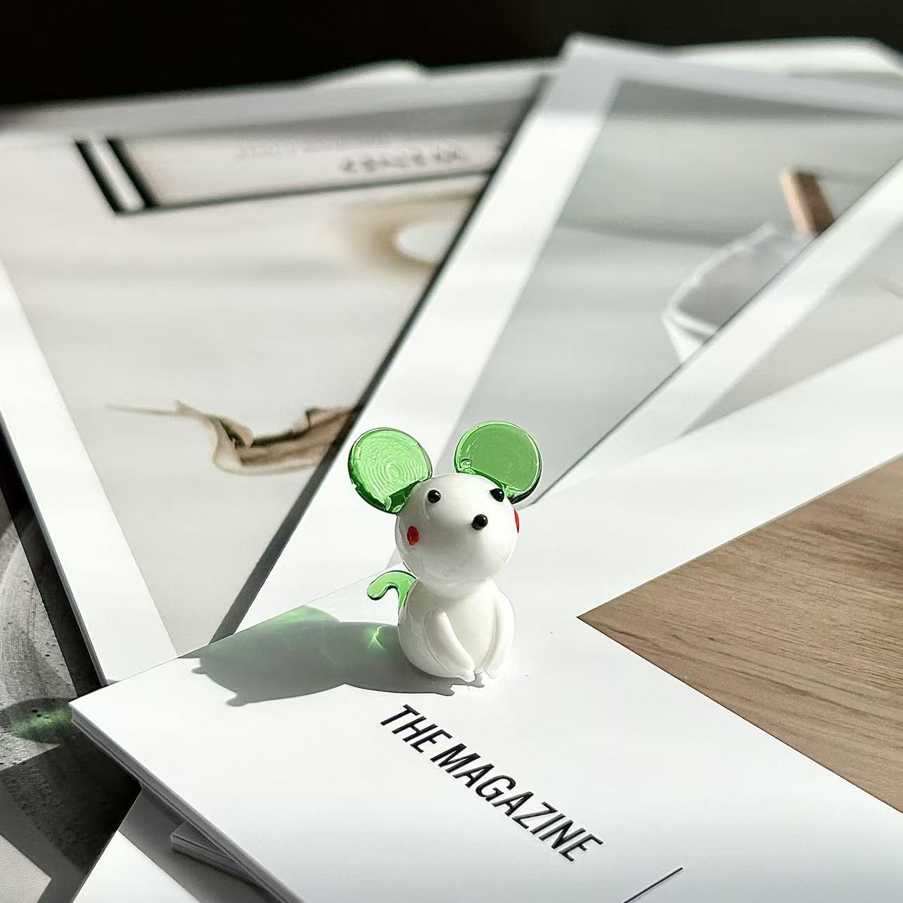 迷你手工琉璃小老鼠摆件多彩斑点创意桌面书房玻璃装饰可爱礼物