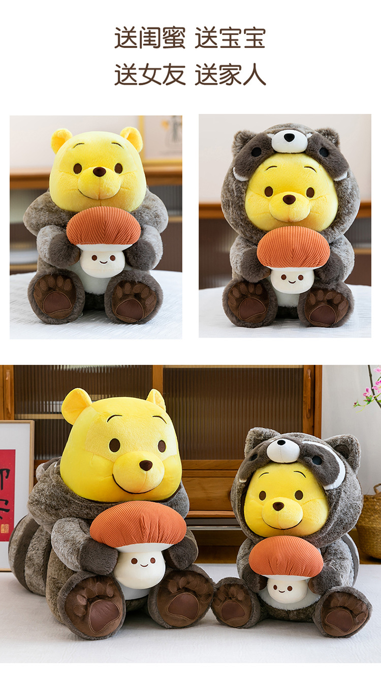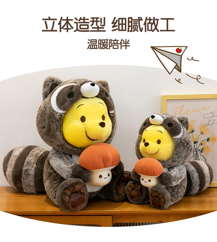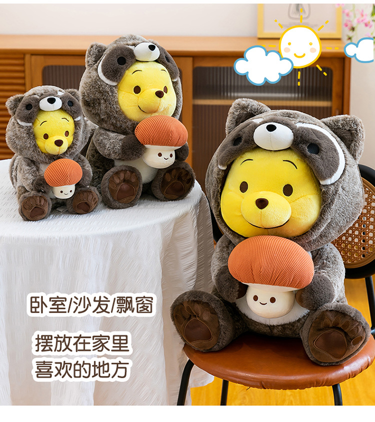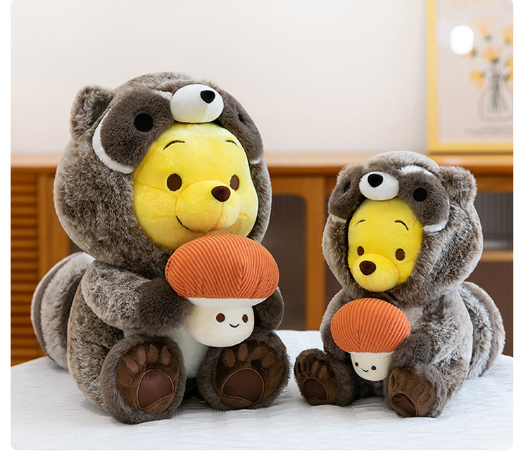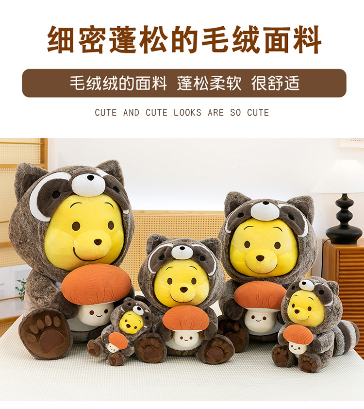 新款浣熊变身毛绒玩具维尼熊公仔噗噗小熊玩偶娃娃抓机兑换批发