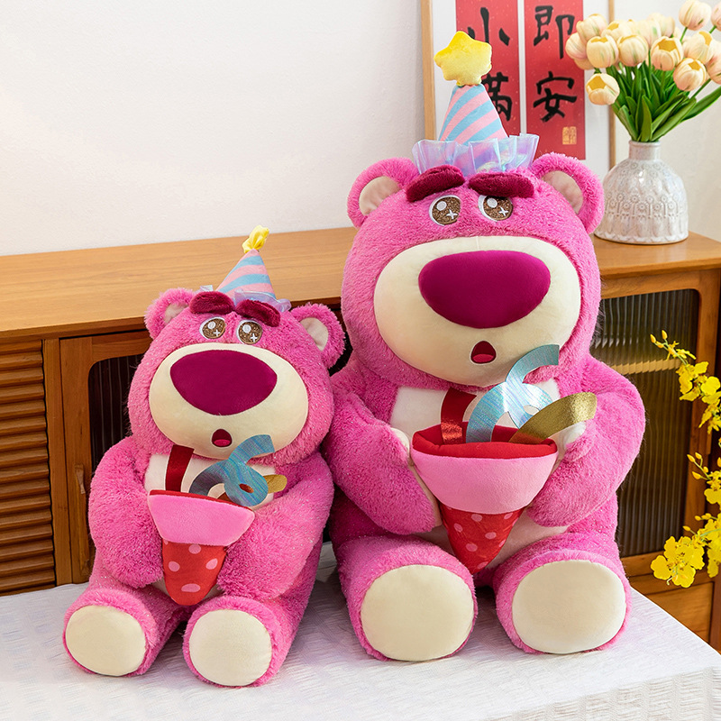 礼帽草莓熊毛绒玩具生日帽草莓熊玩偶小熊公仔儿童礼物不娃娃批发