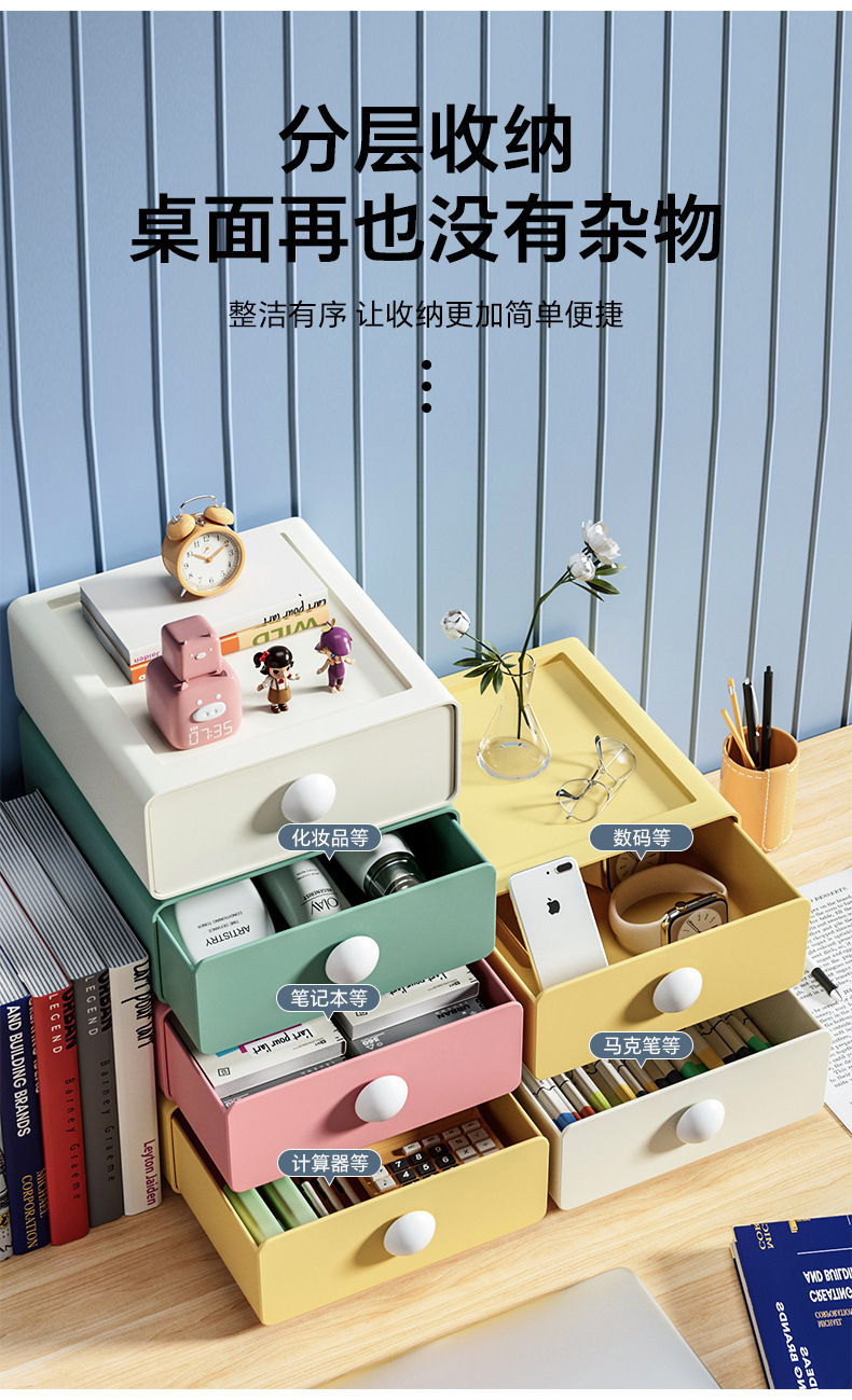 ドーパミンデスクトップ収納ボックス引き出し型積み重ね可能な収納ボックス学生寮雑貨収納ボックスプラスチック収納ボックス