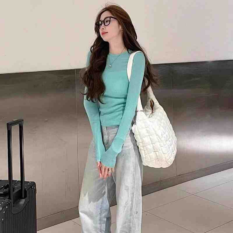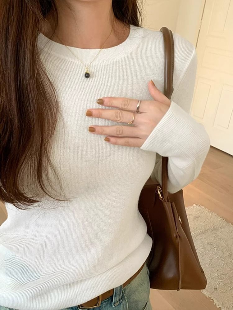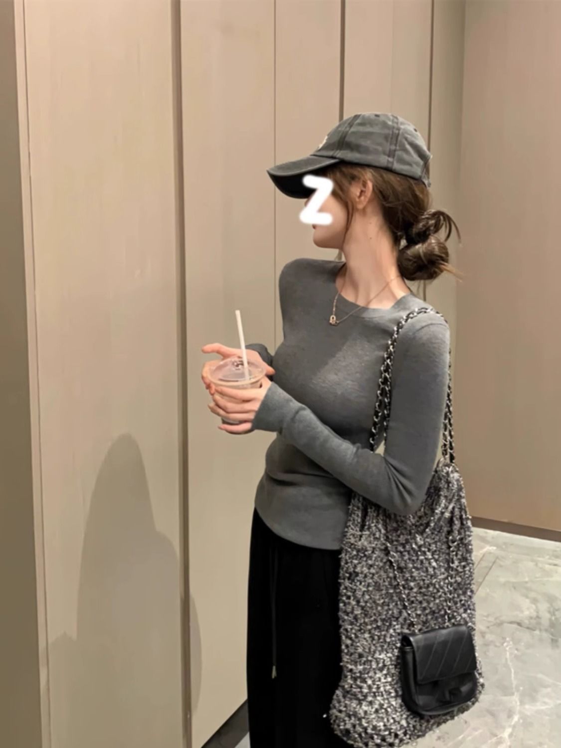 超级好看灰色针织打底衫内搭毛衣秋冬季新款简约上衣