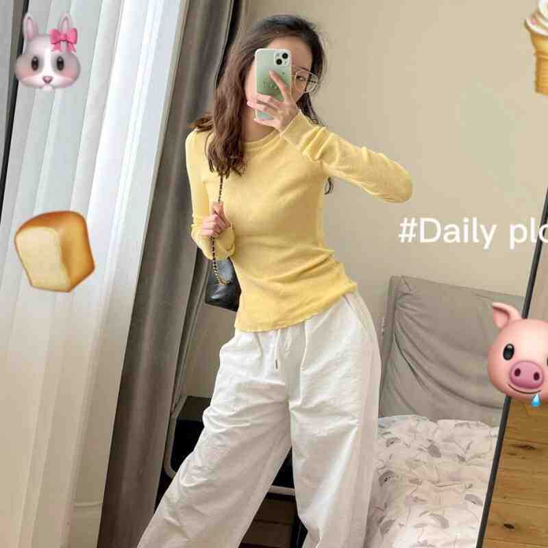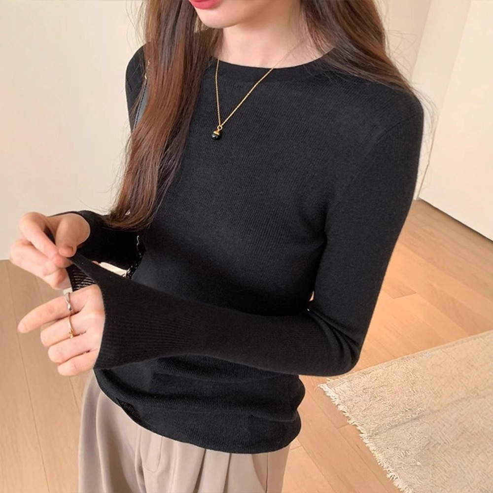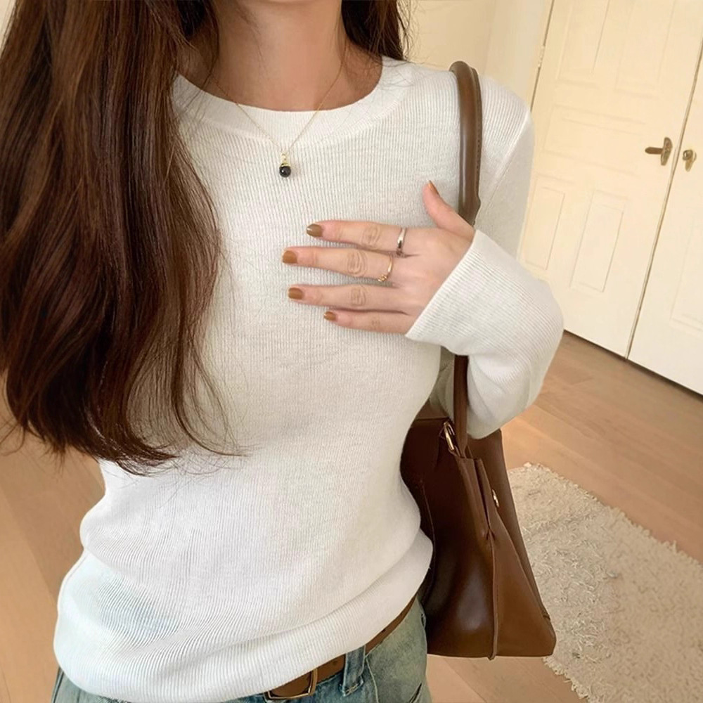 长袖T恤女新款韩版修身坑条纹百搭纯色打底针织衫上衣ins