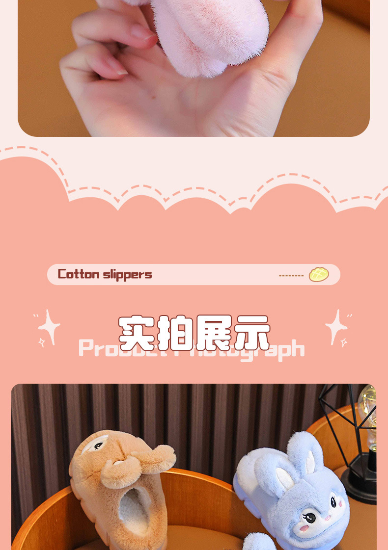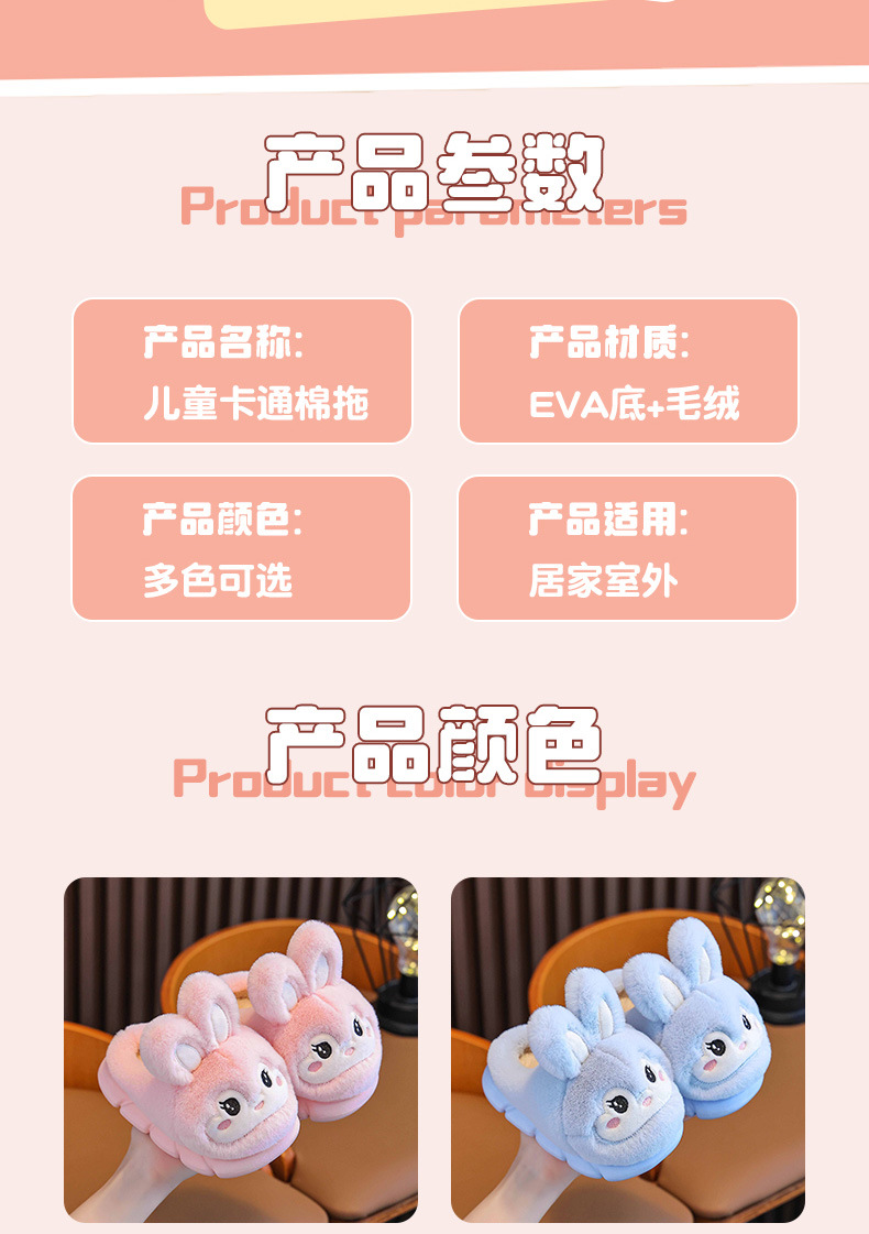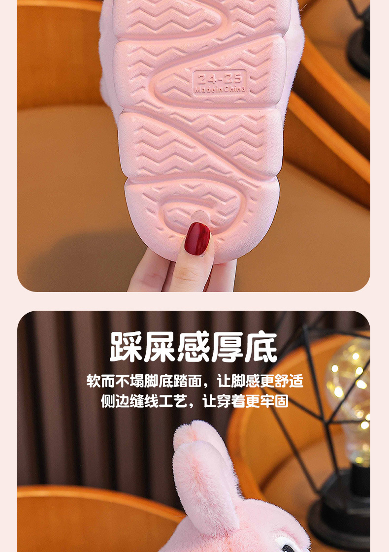 可爱儿童棉拖鞋2025年冬季保暖防滑软底兔子拖鞋室内居家保暖鞋
