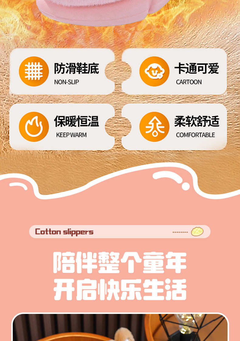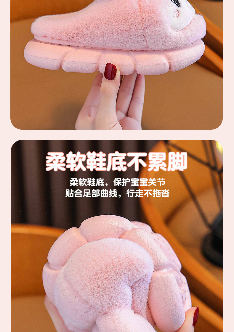 冬季儿童棉拖鞋男女童保暖加绒毛毛厚底中小童居家防滑宝宝棉拖鞋