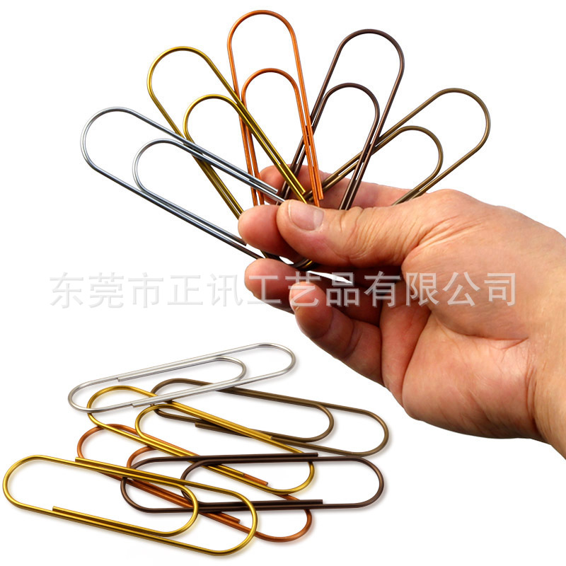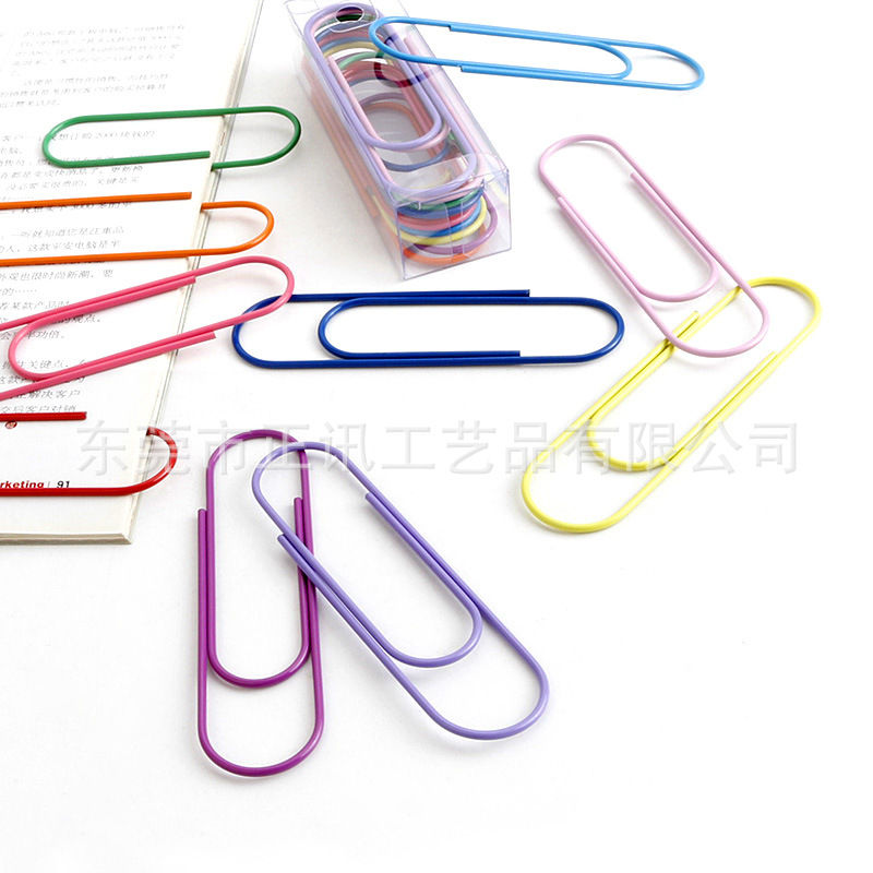 亚马逊新爆款17色彩色大号回形针书签 套装金属100mm曲别针万字夹