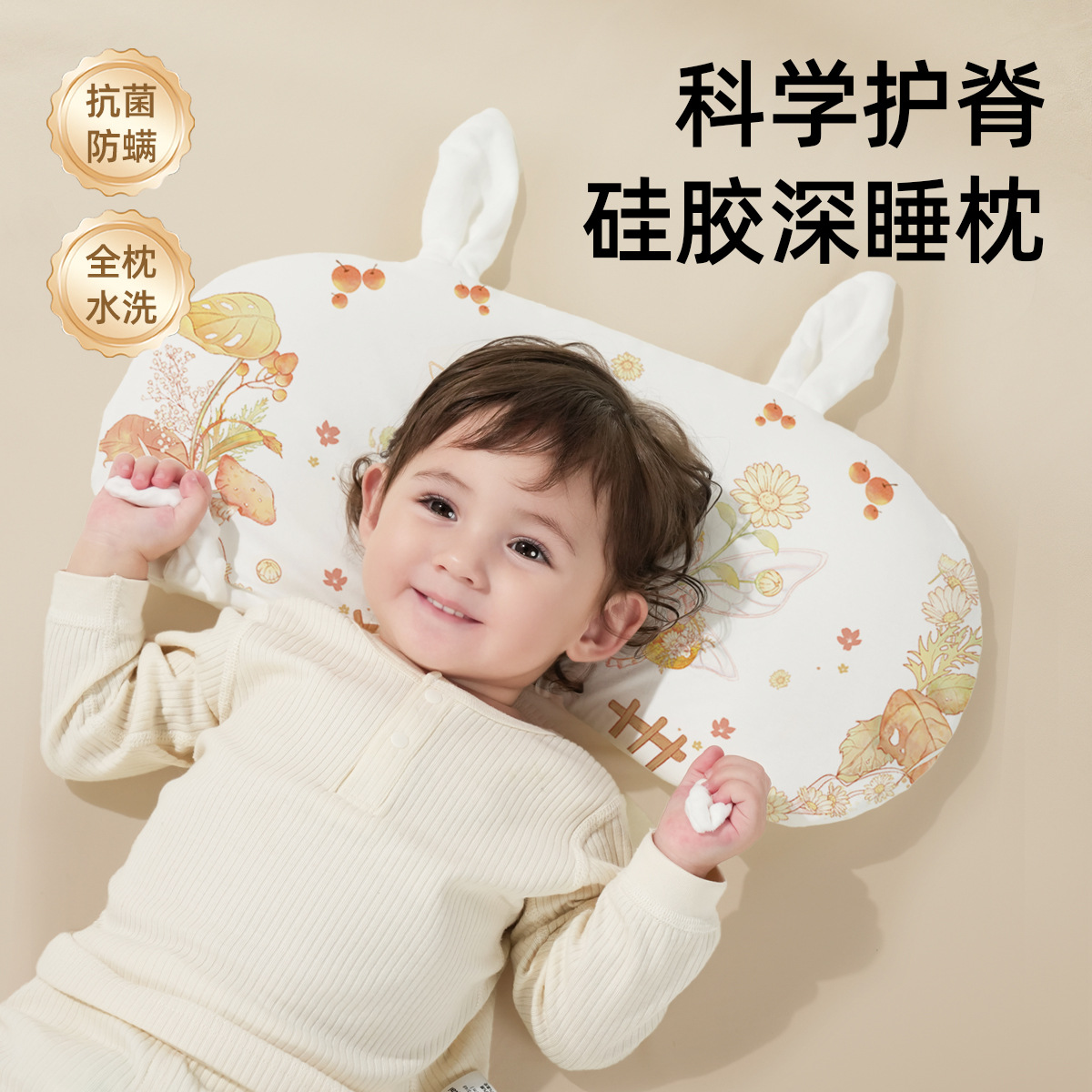 婴儿枕头6个月以上儿童硅胶1-3-6岁四季通用小学生幼儿园云片枕