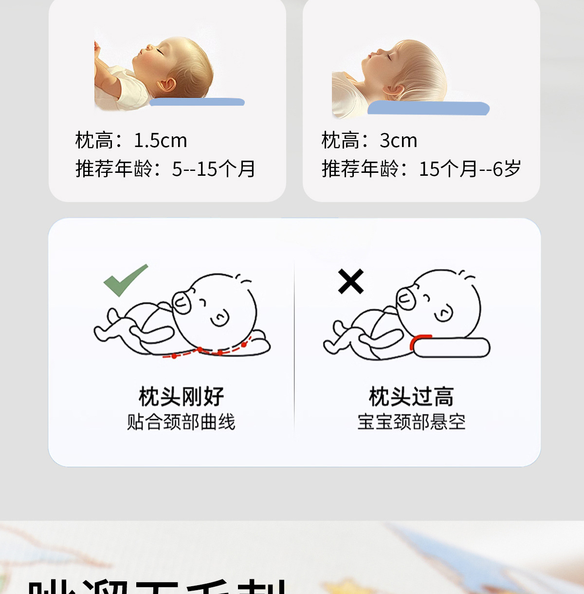 婴儿枕头6个月以上儿童1-3-6岁四季通用小学生硅胶幼儿园云片枕