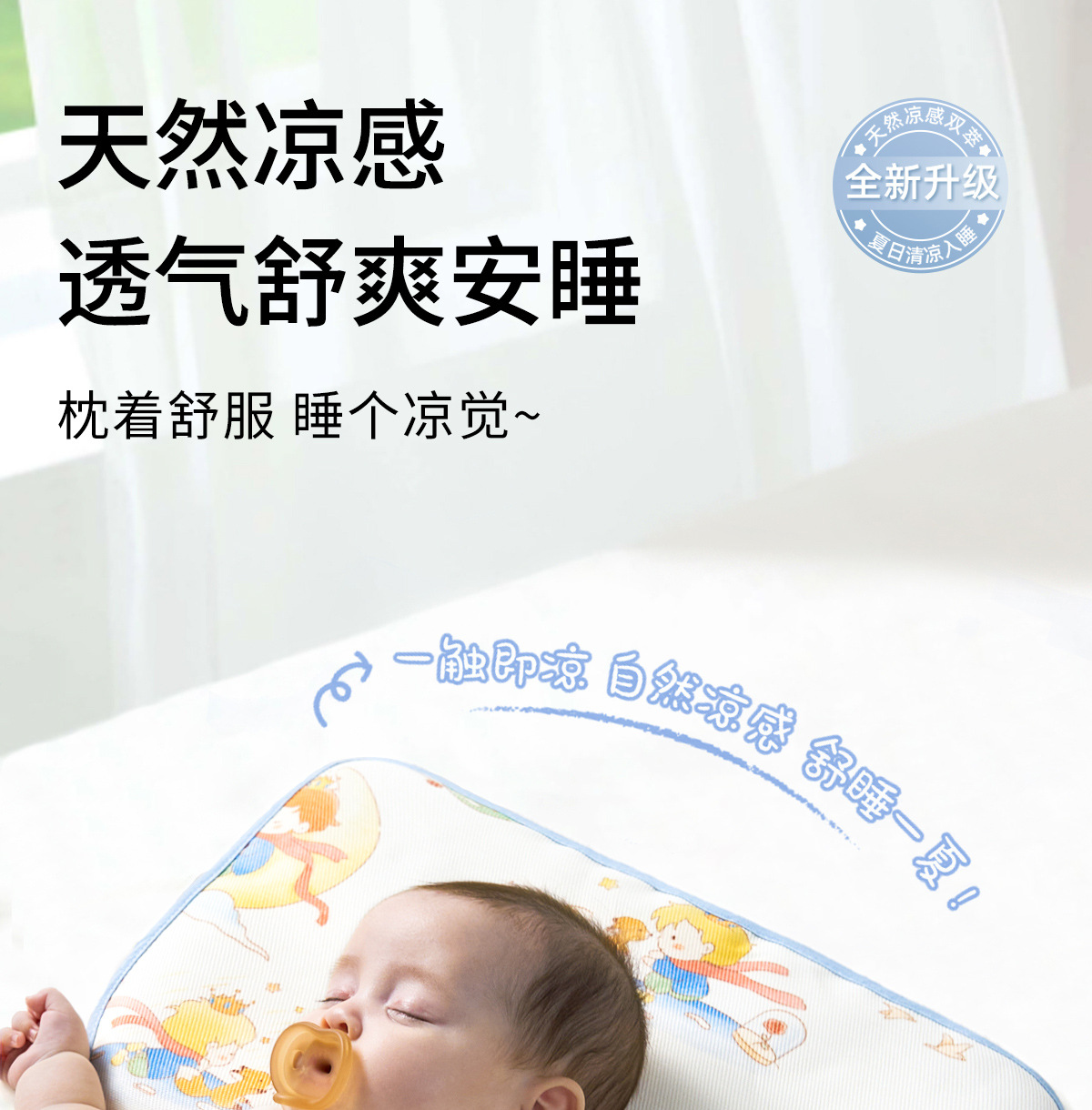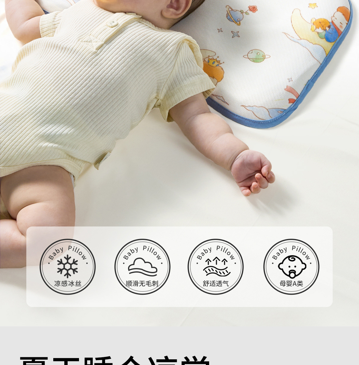 婴儿枕头夏季新生儿0到6个月以上1岁宝宝冰丝凉枕幼儿夏天云片枕