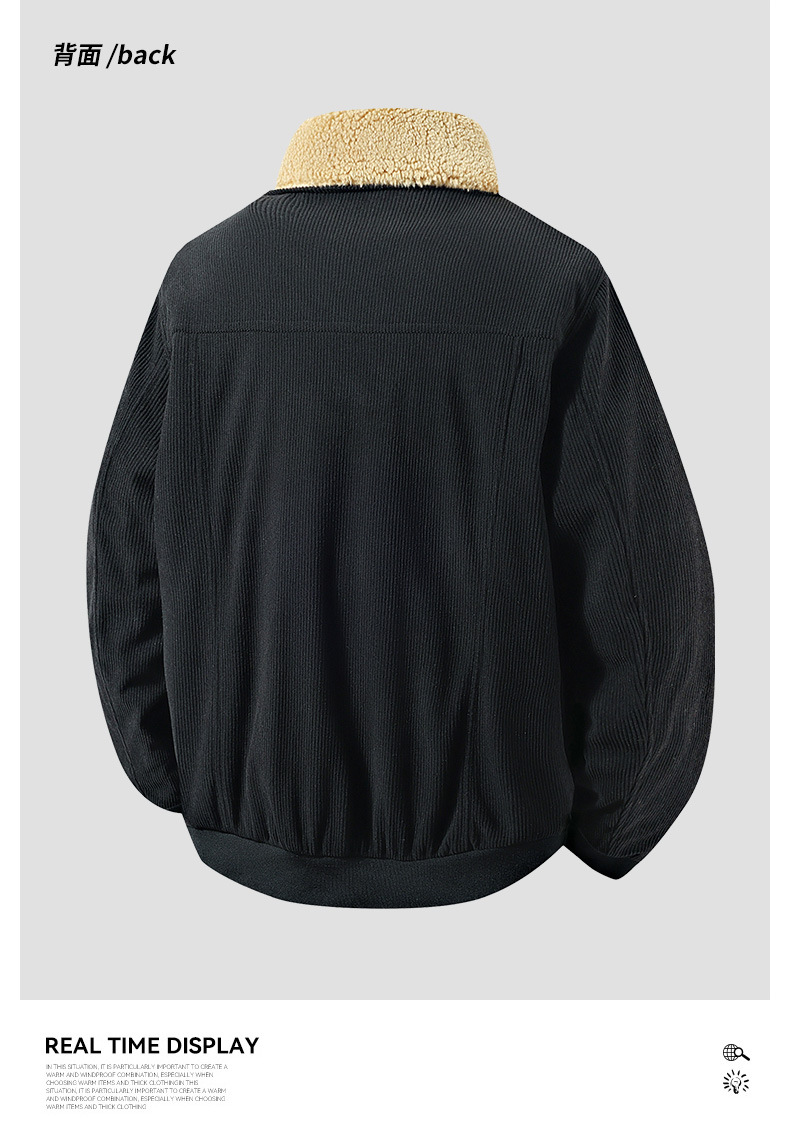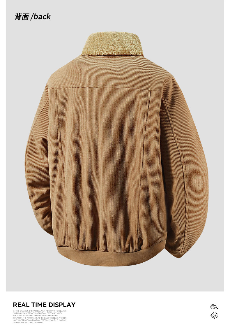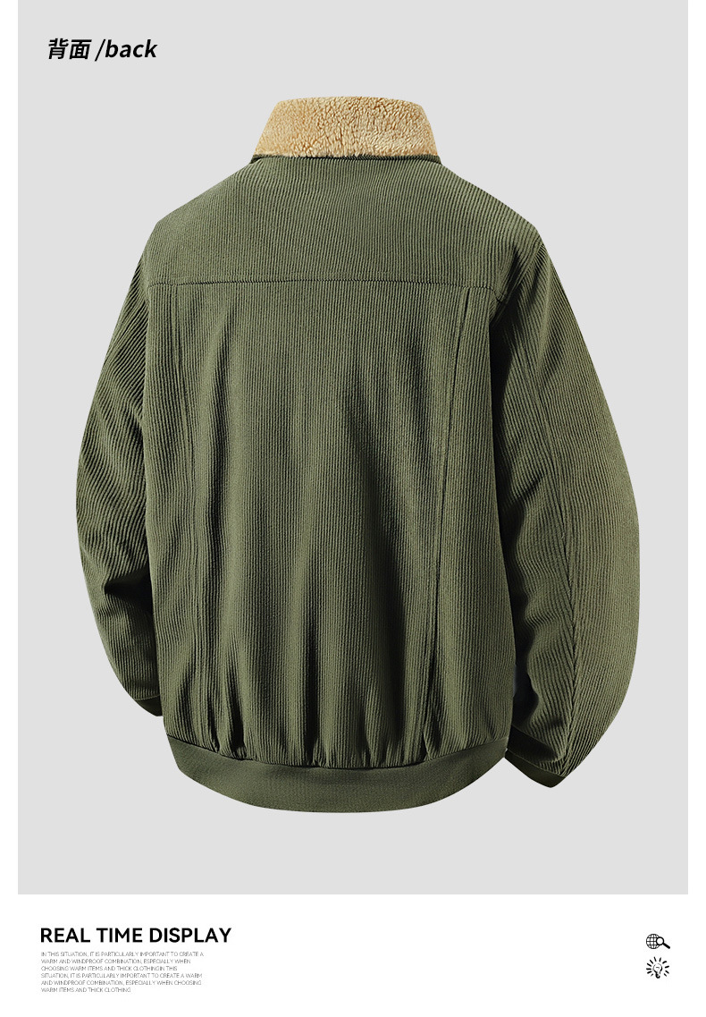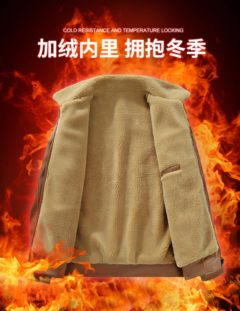 秋冬季中青年外套男羊羔绒加绒加厚灯芯绒工装时尚休闲宽松男士保