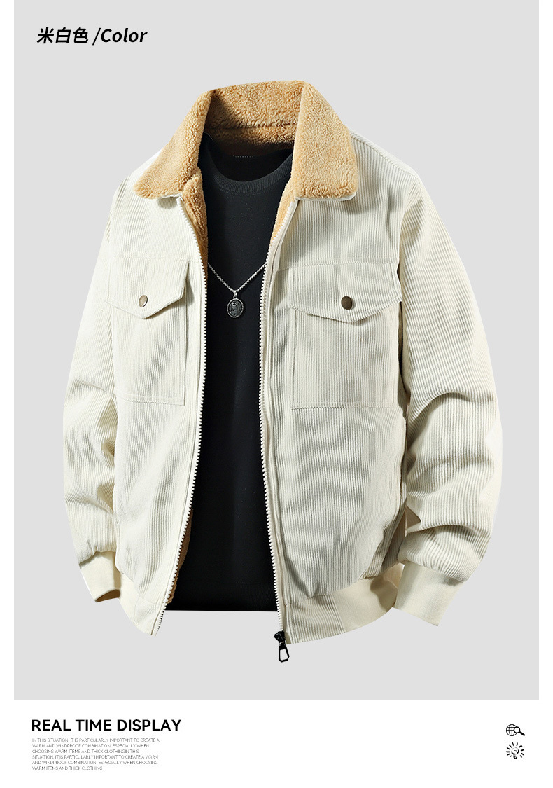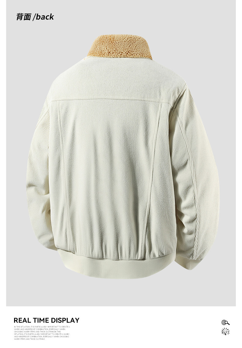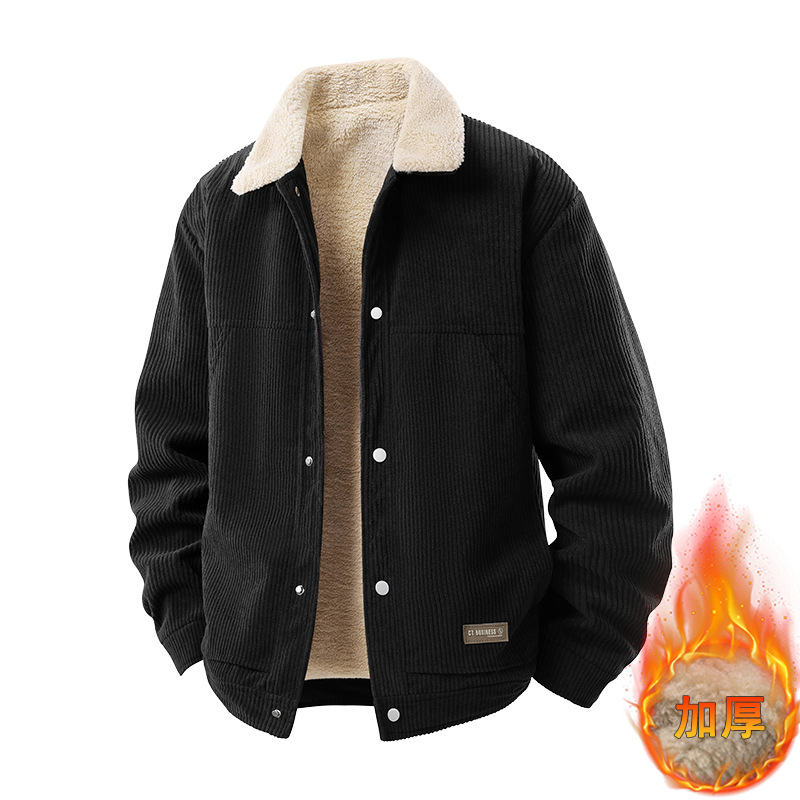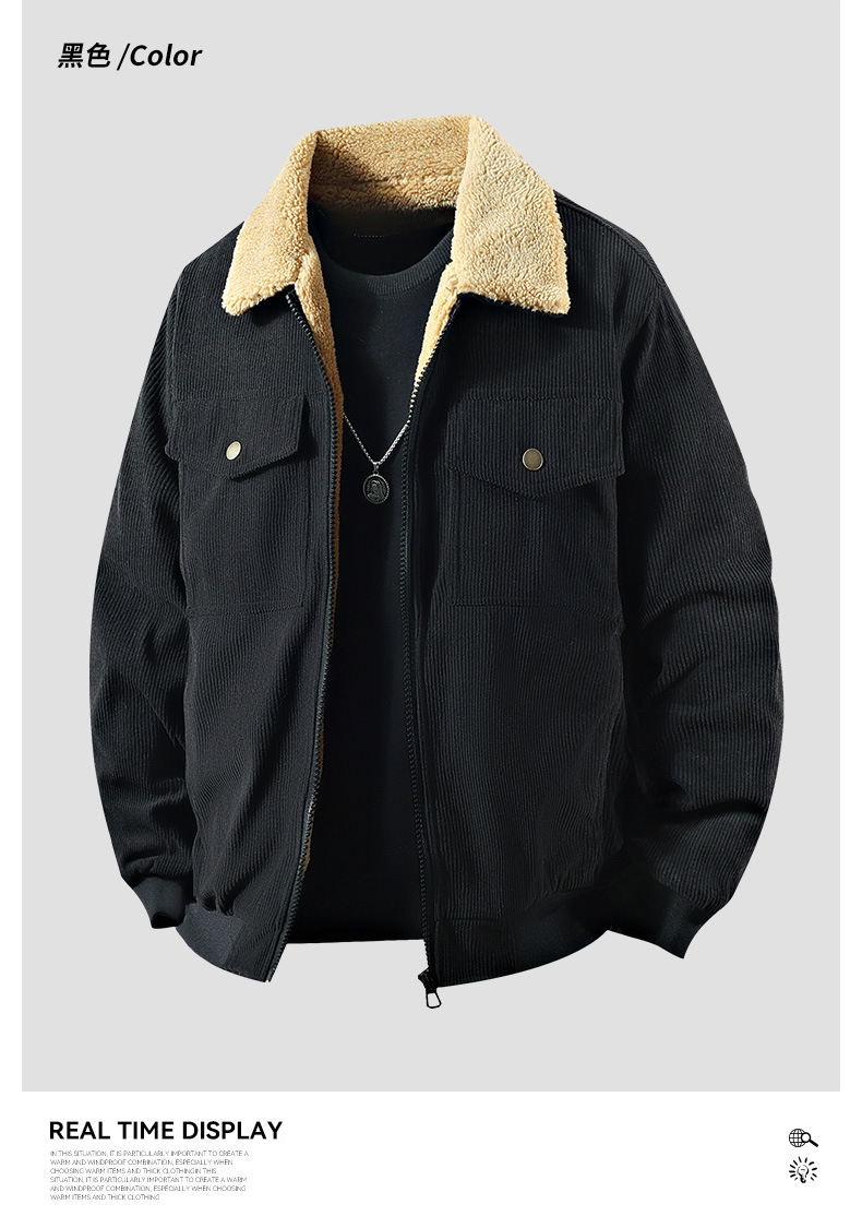 秋冬季中青年外套男羊羔绒加绒加厚灯芯绒工装时尚休闲宽松男士保