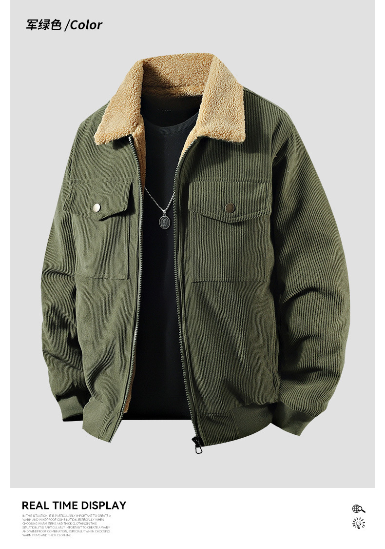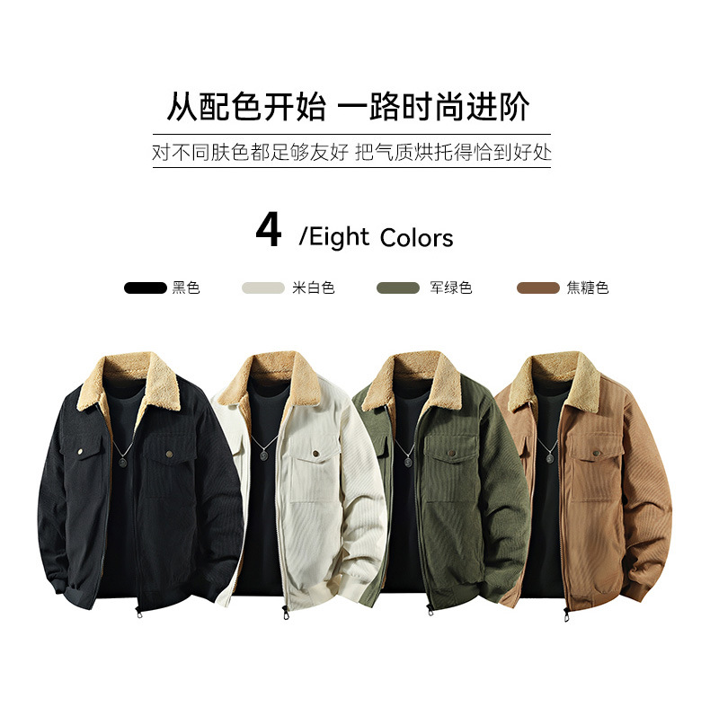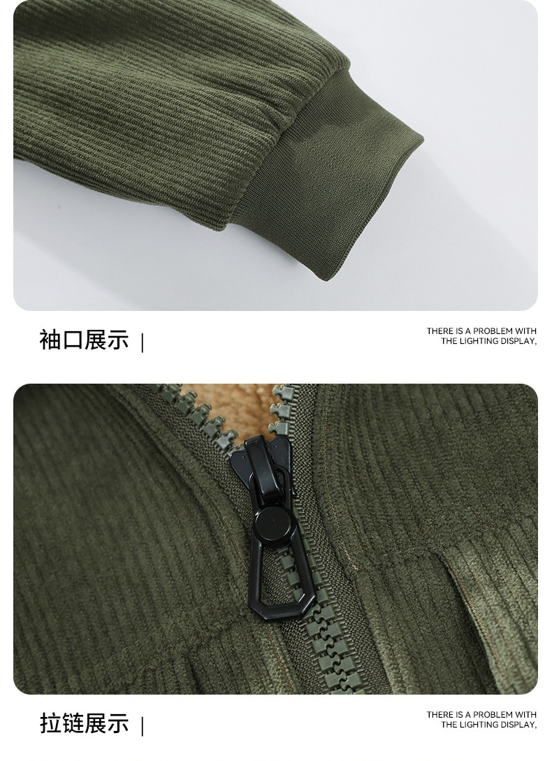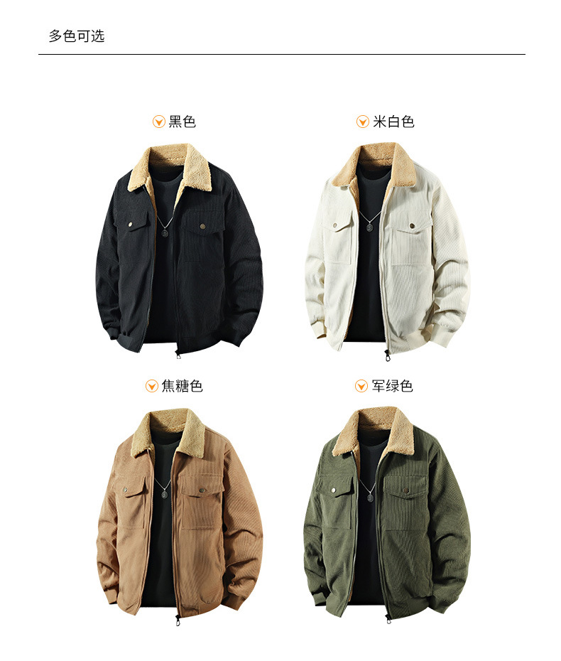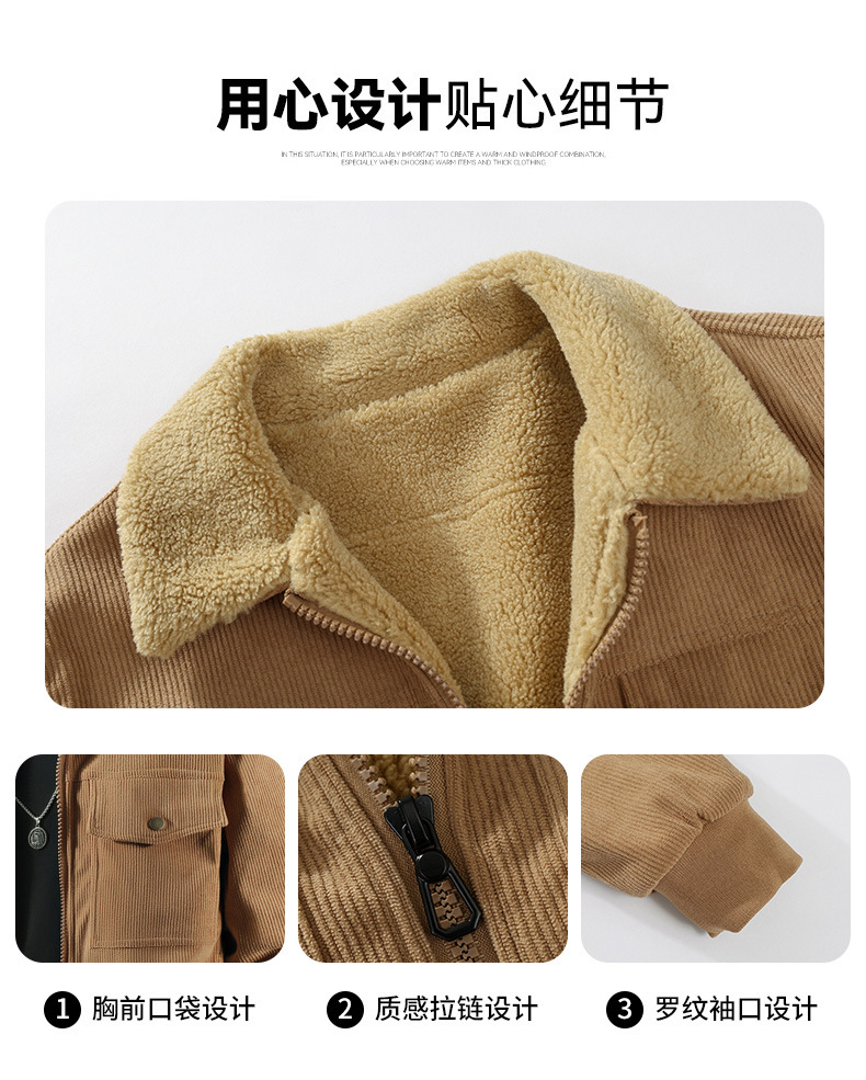 灯芯绒外套秋冬男士加绒加厚工装多袋夹克外贸羊羔绒翻领跨境夹克