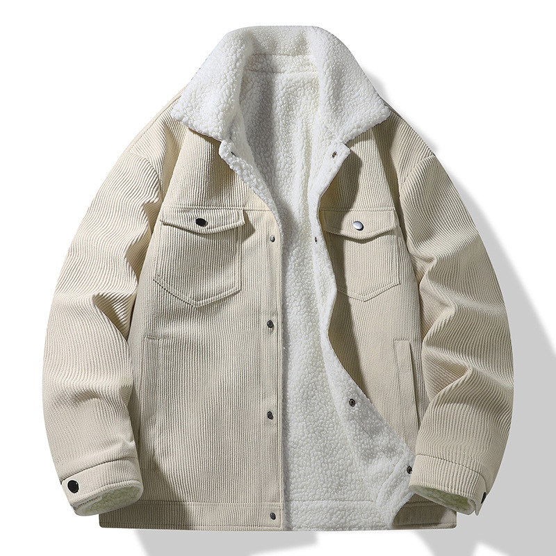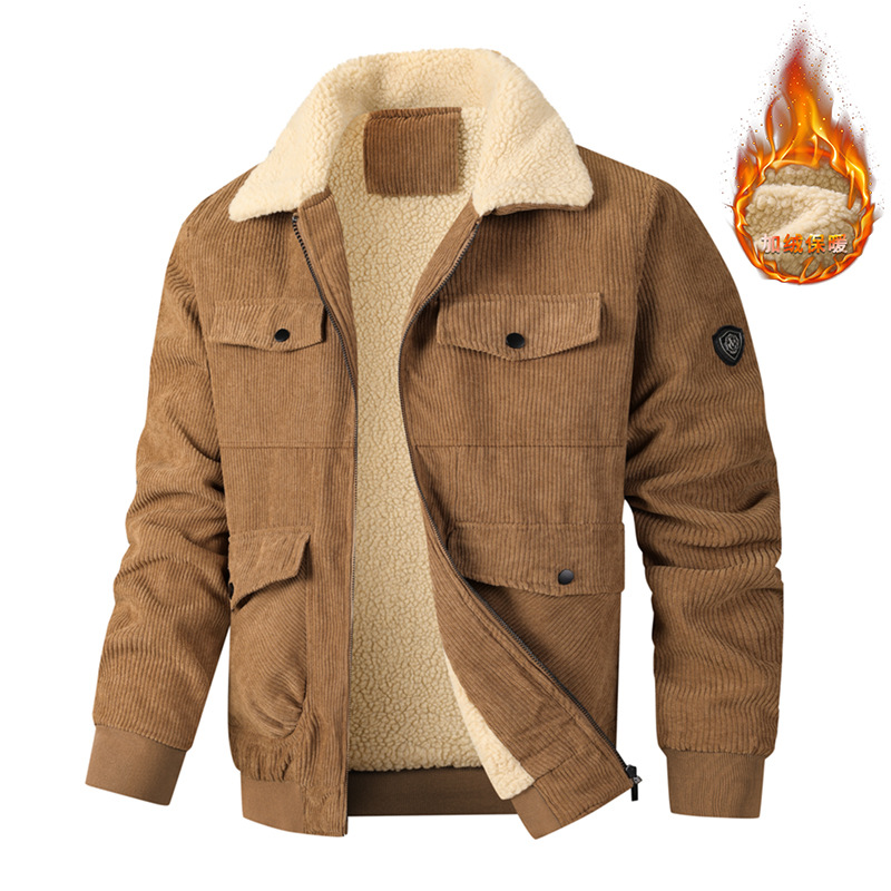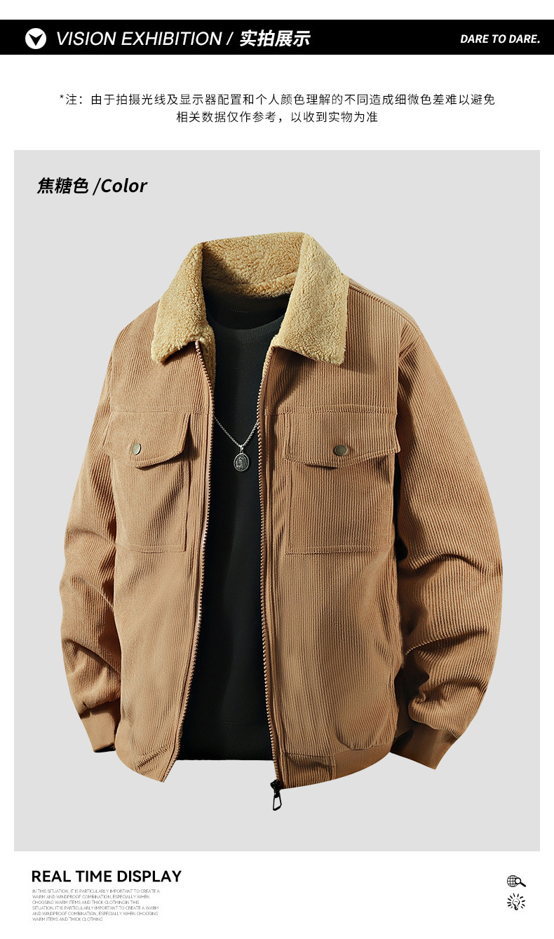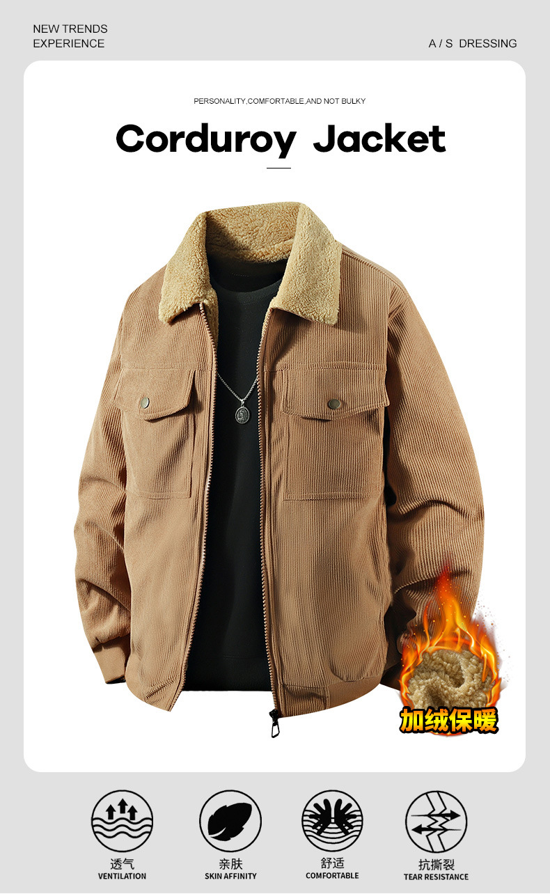 灯芯绒外套秋冬男士加绒加厚工装多袋夹克外贸羊羔绒翻领跨境夹克