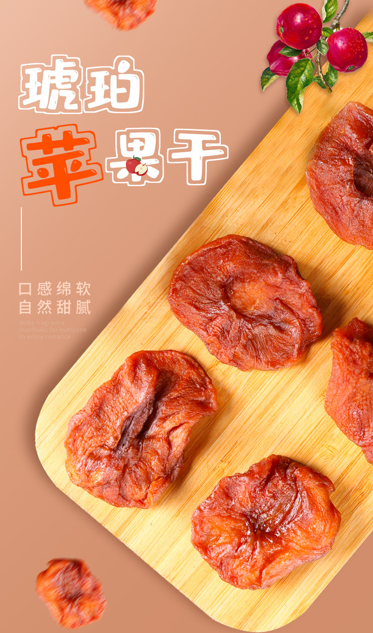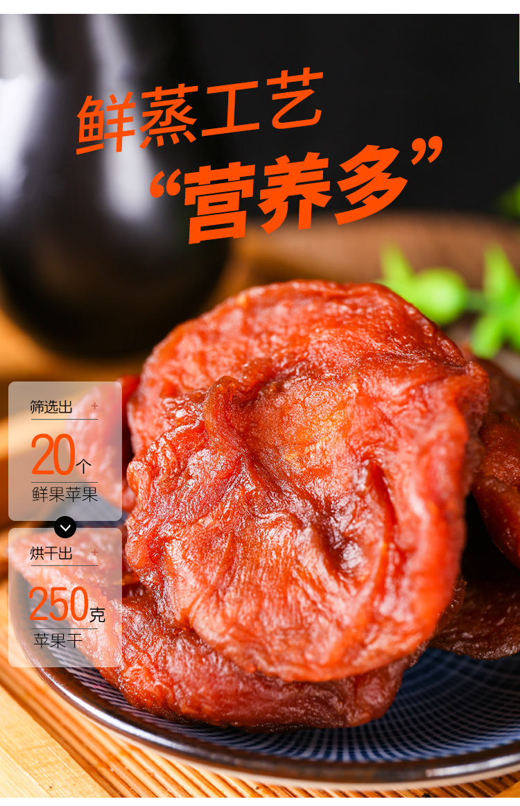代发三蒸三晒苹果干 新鲜软糯香甜即食果干烟台红富士倒蒸苹果干