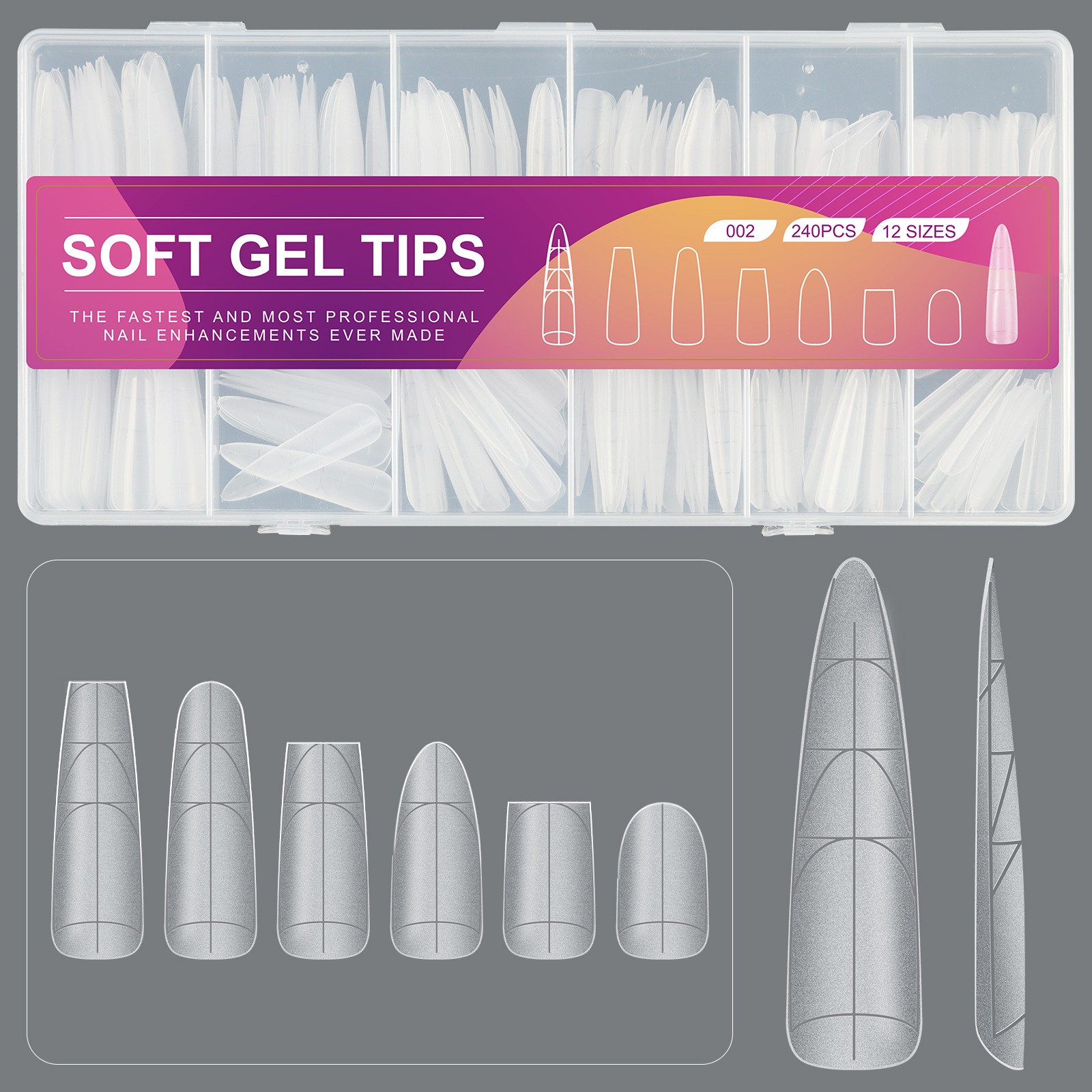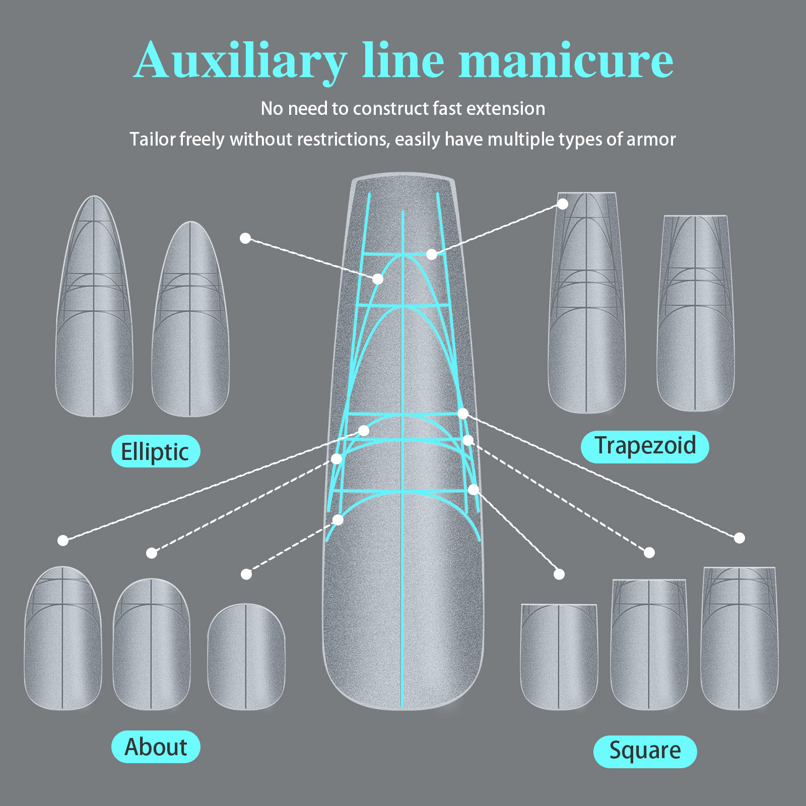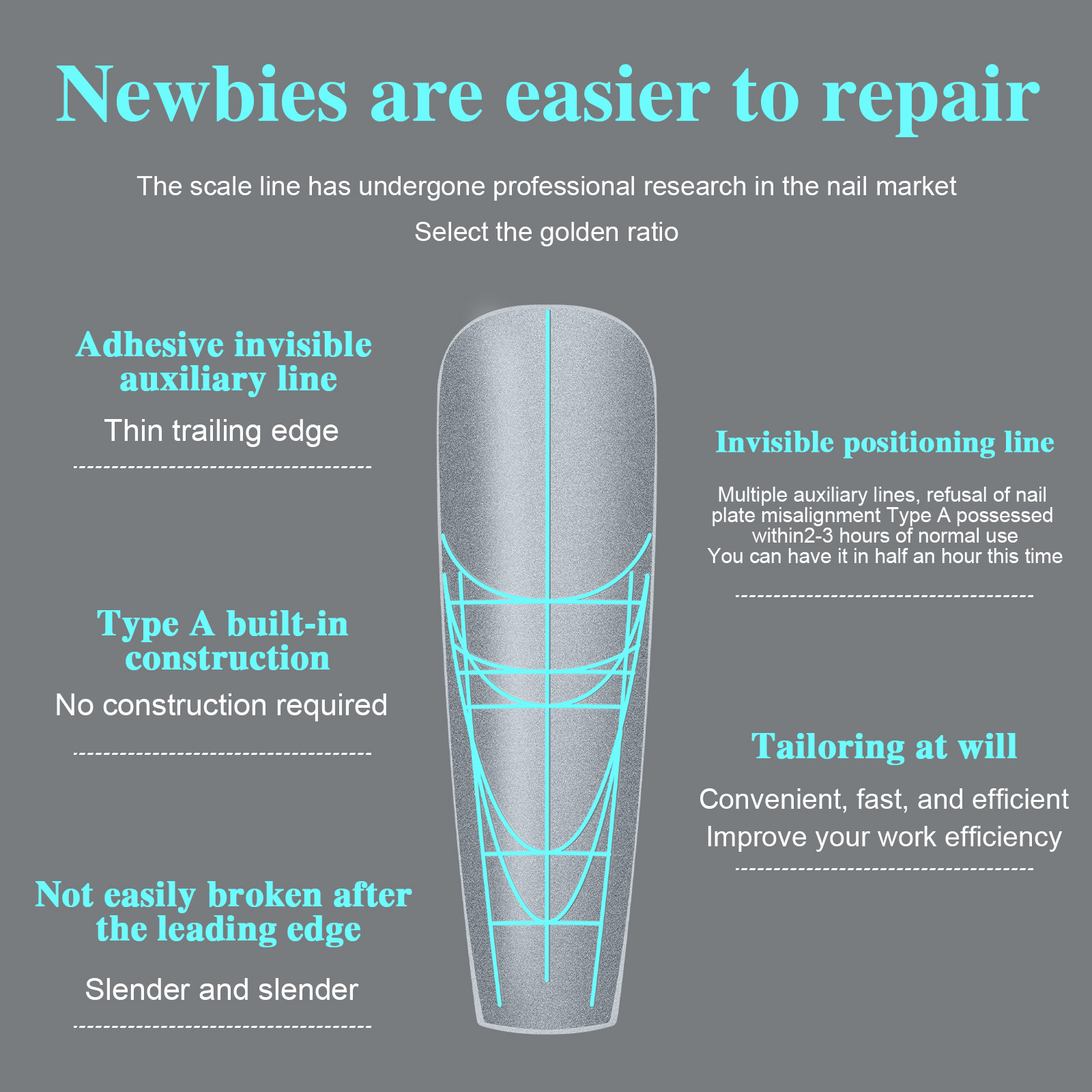 跨境刻度定位甲片超薄无痕免刻磨指甲延长穿戴全贴半贴美甲店专用