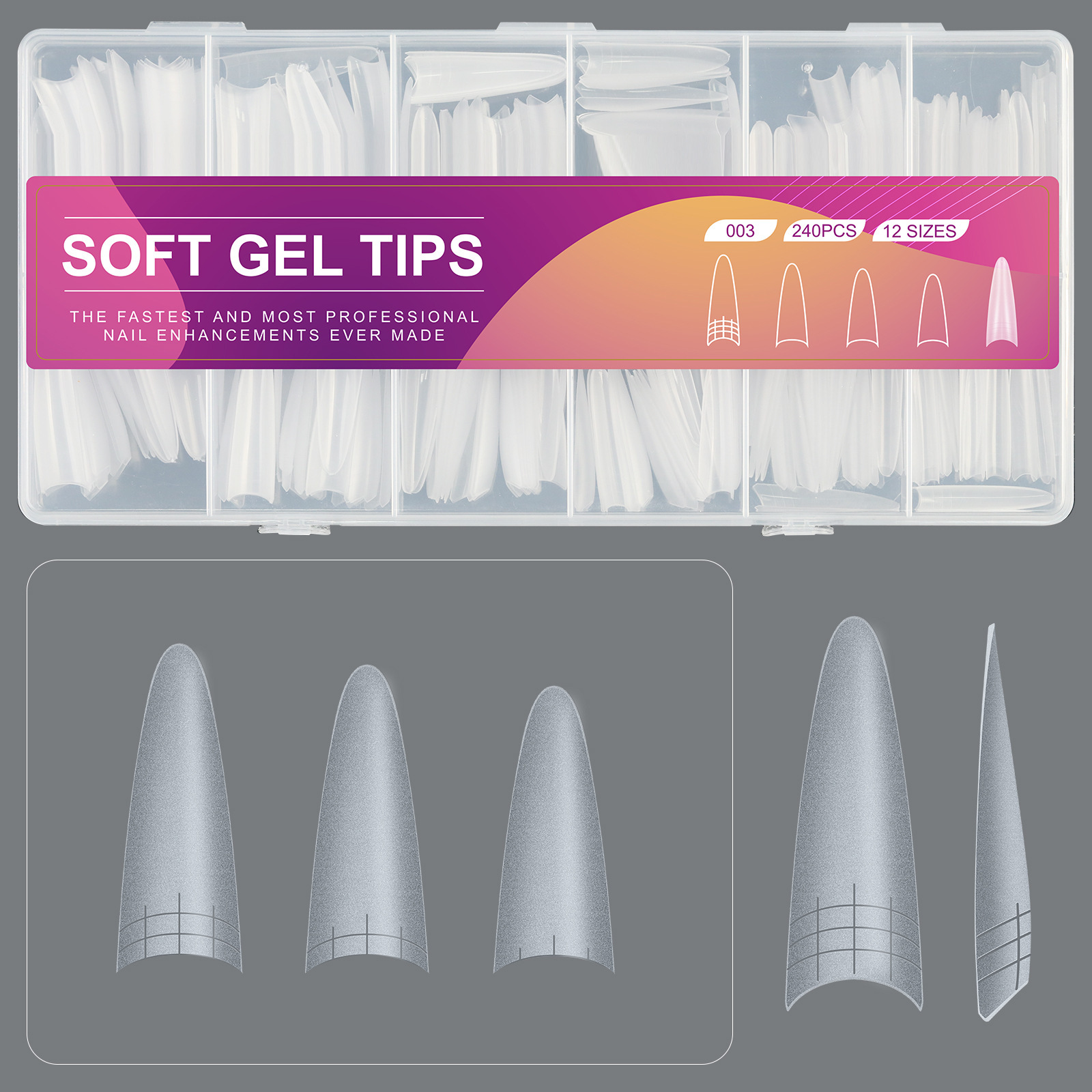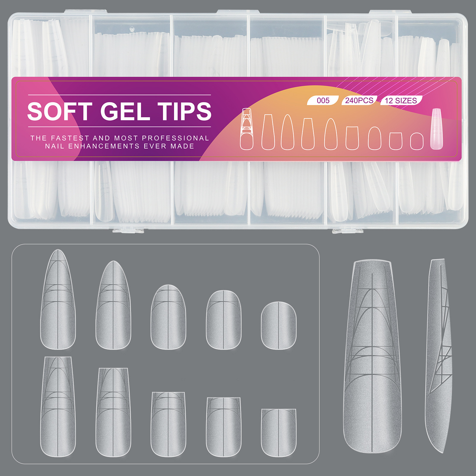 新款D弧月牙半贴透明显瘦穿戴甲甲片美甲甲片美甲店240片超薄