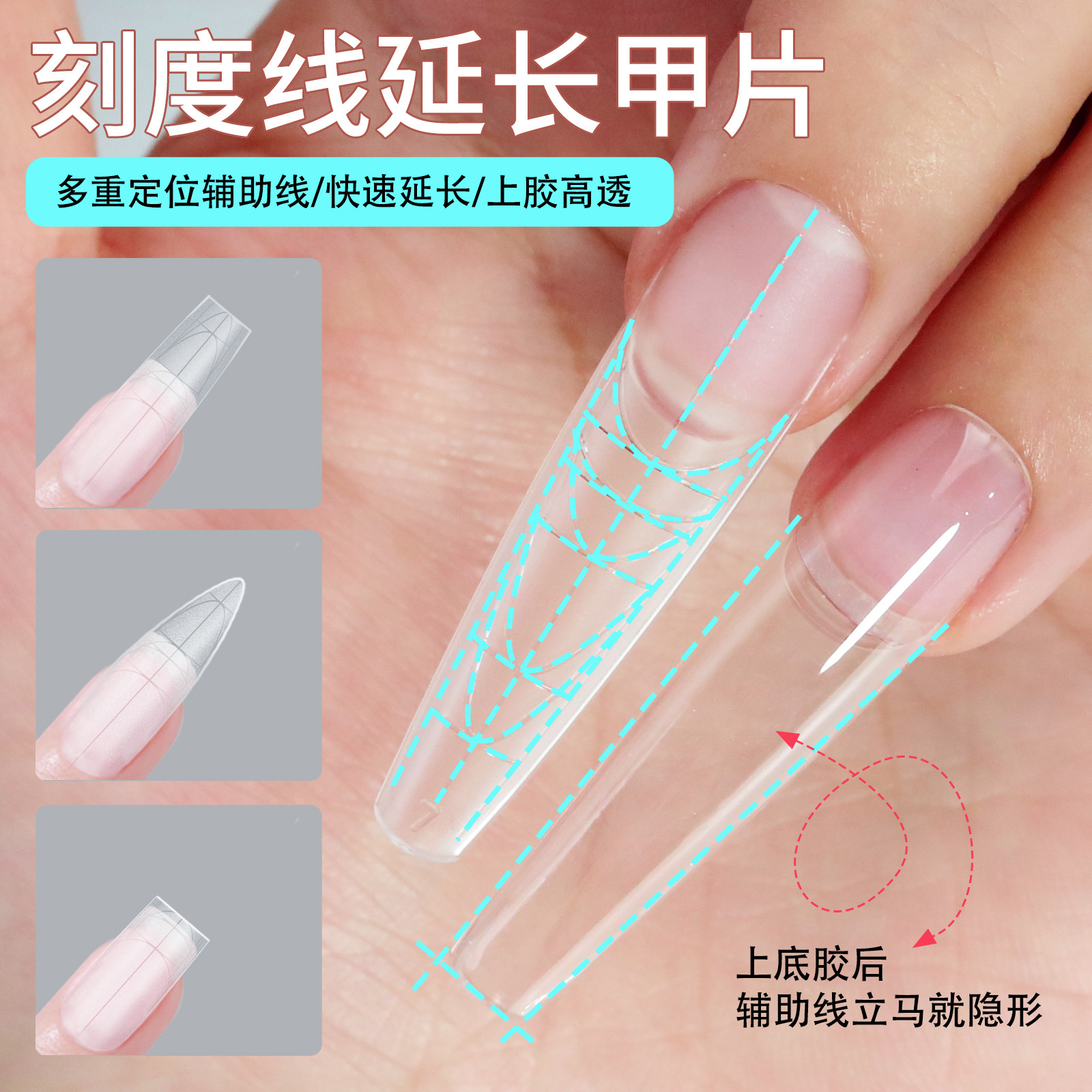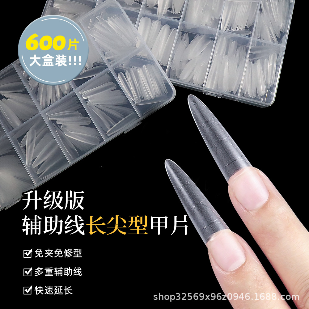 美甲超长细狗尖辅助线刻度甲片全半贴无痕磨砂免刻磨延长指甲贴片