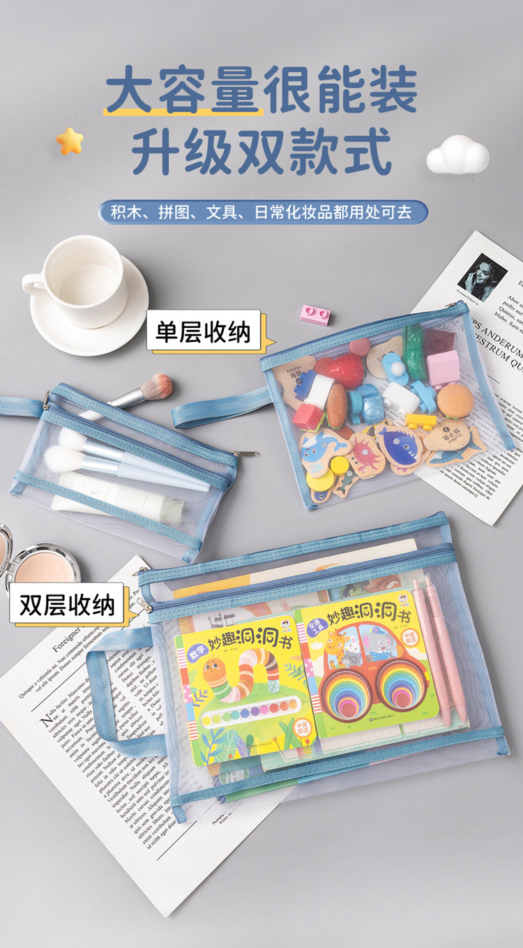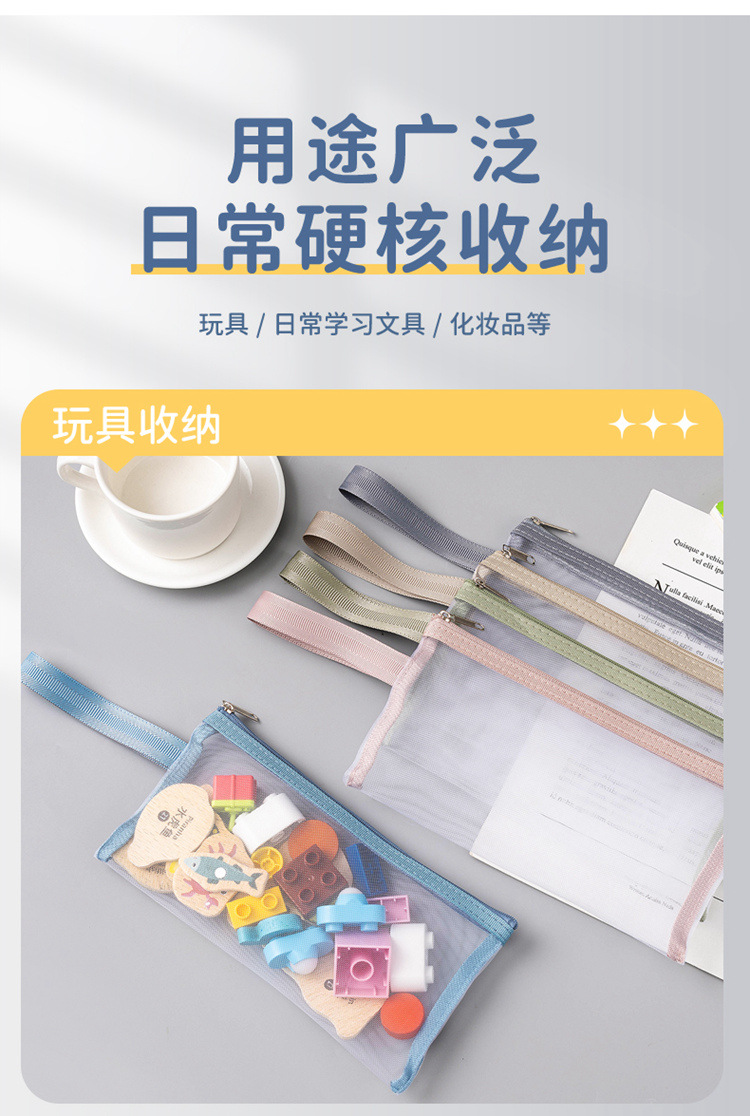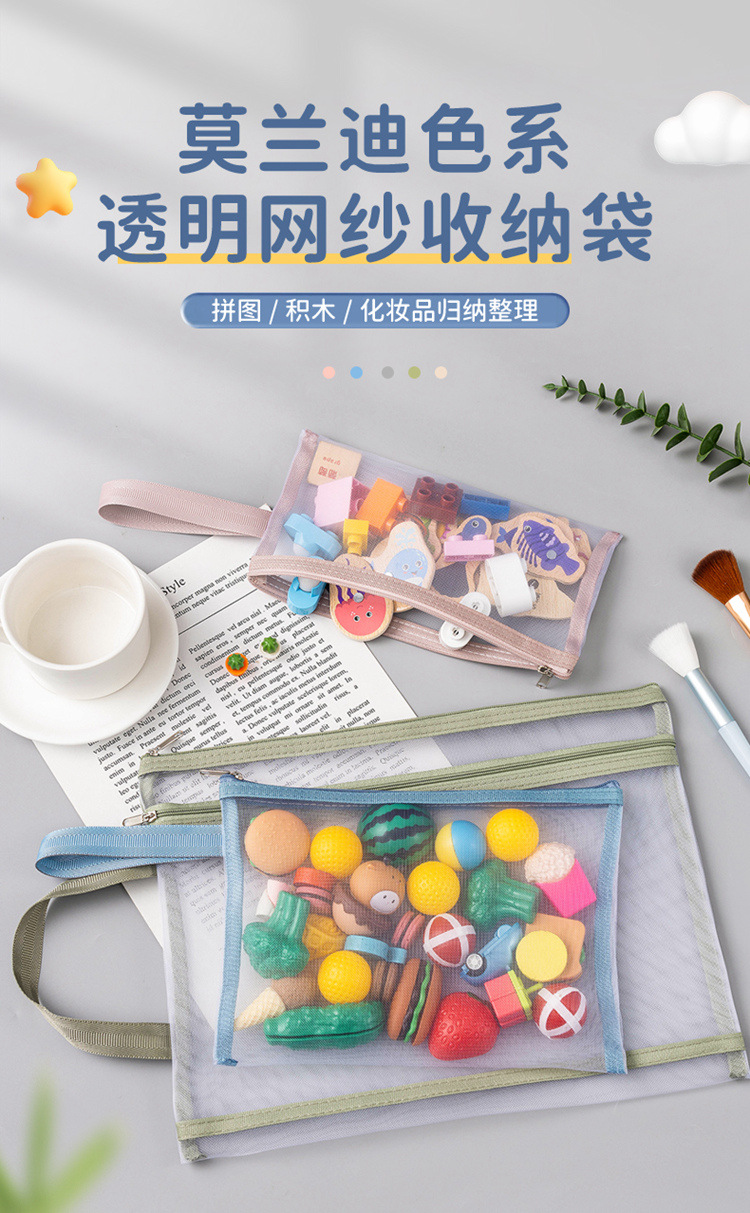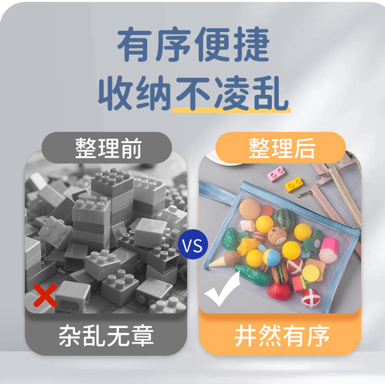 玩具分类整理袋拼图收纳袋小积木杂物透明拉链袋尼龙网纱袋可水洗