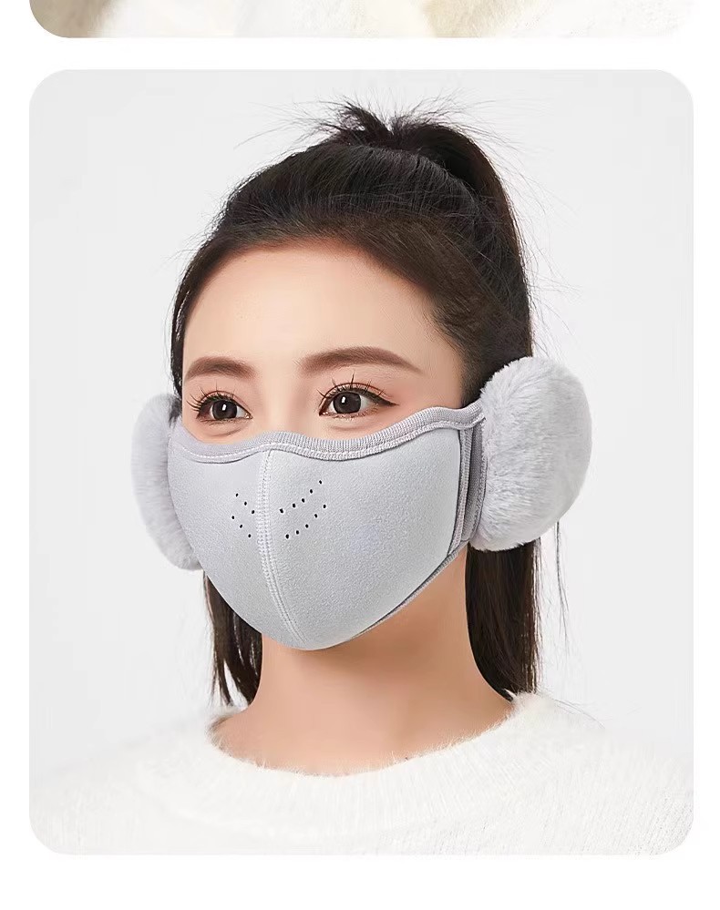 加绒保暖口罩带耳罩女秋冬季可爱毛绒防风防寒护耳口罩二合一面罩