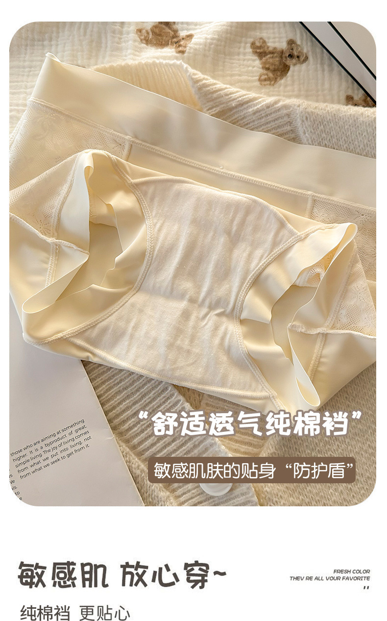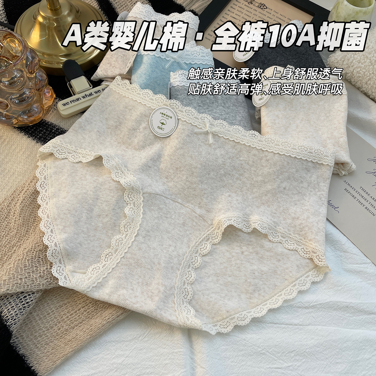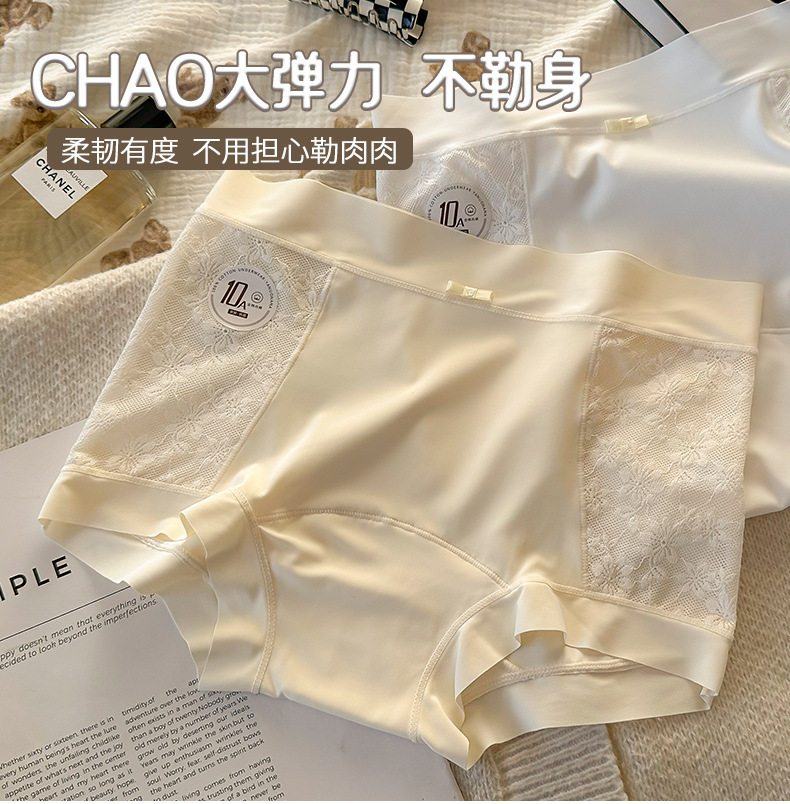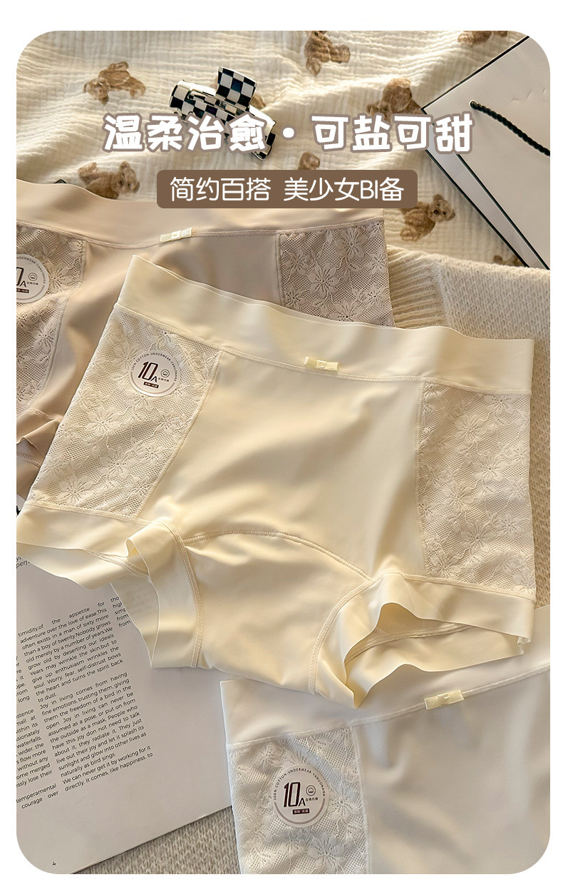 新款蕾丝内裤女士双拼10A抑菌裆无痕超轻透气中腰平角纯棉裆内裤