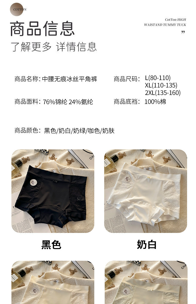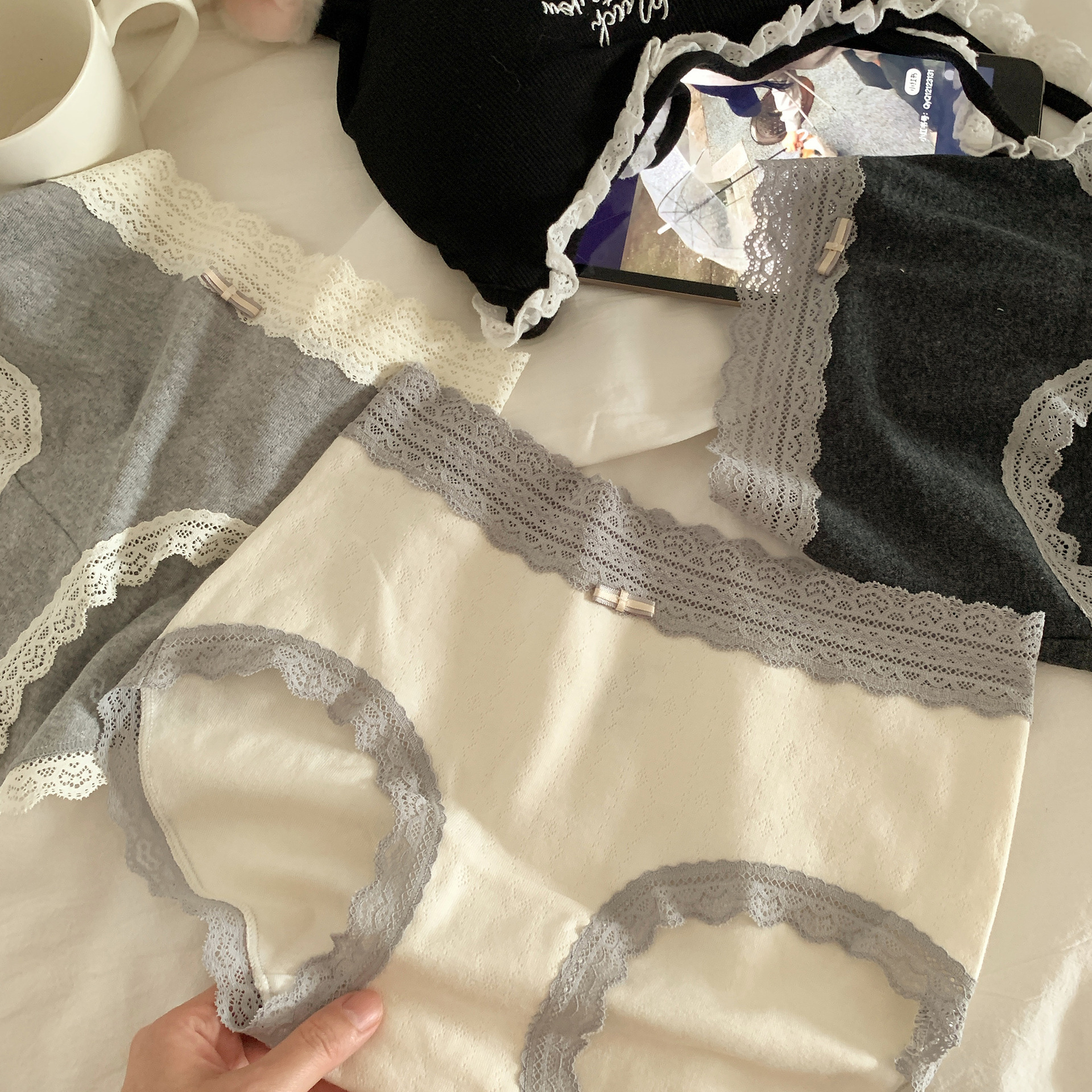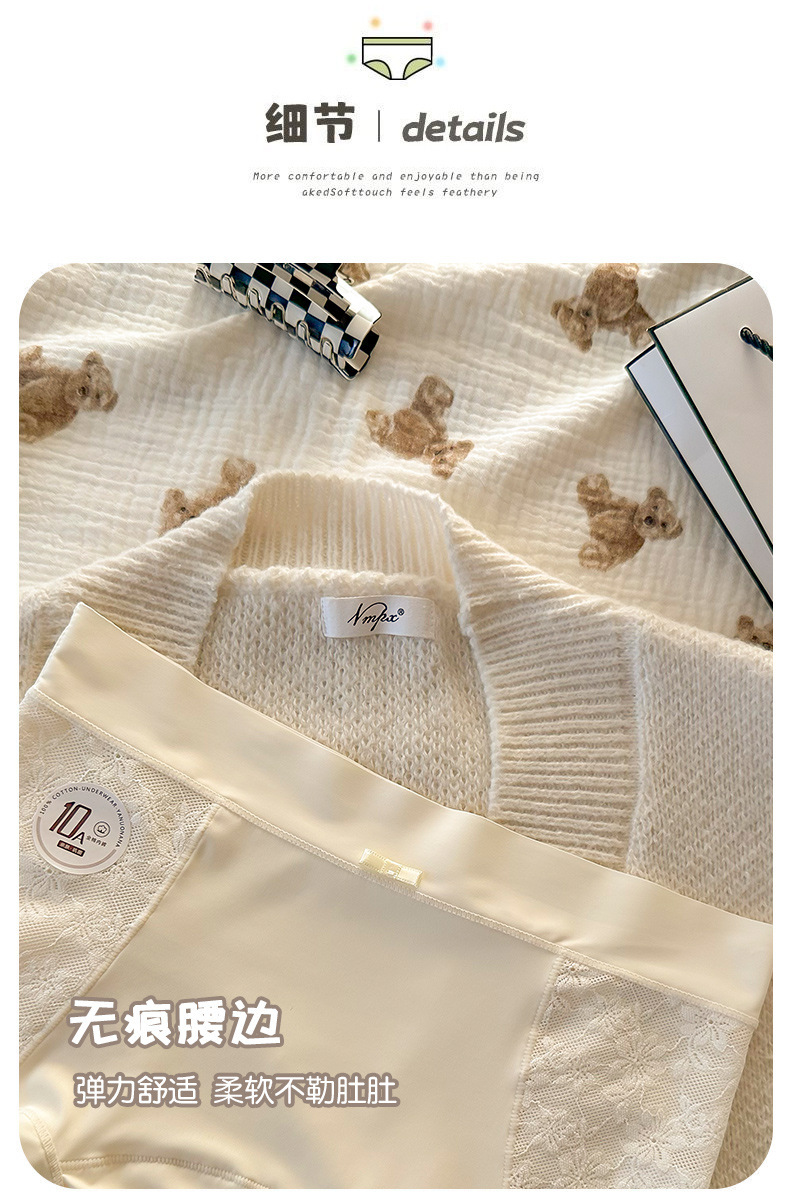 新款蕾丝内裤女士双拼10A抑菌裆无痕超轻透气中腰平角纯棉裆内裤