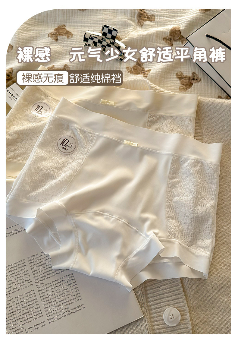 2025新款双拼蕾丝平角女士内裤10A抗菌加长加宽纯棉裆全棉内裤女