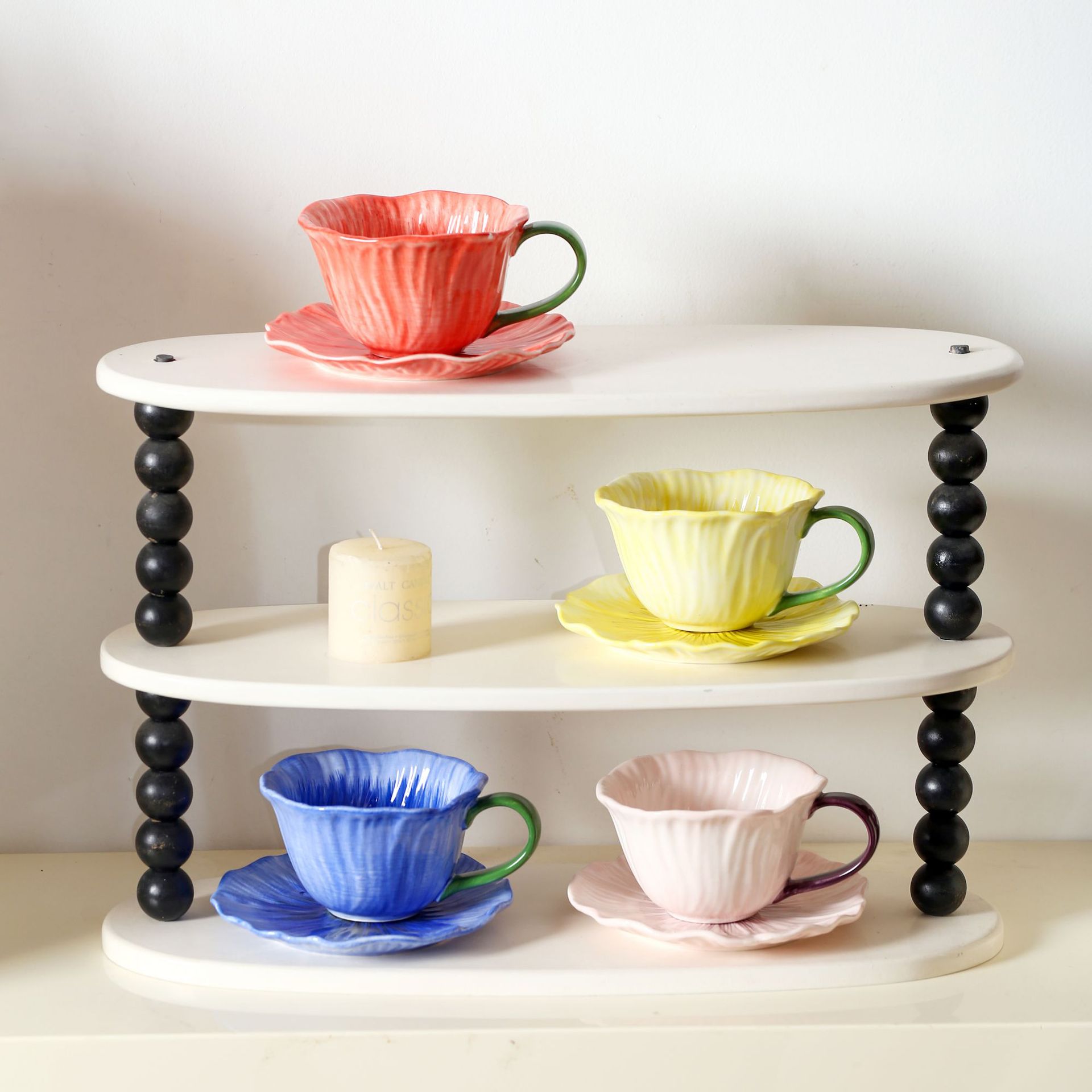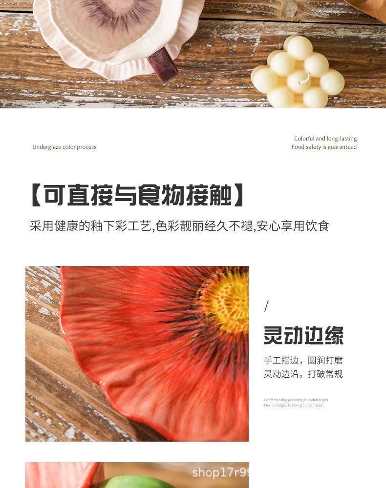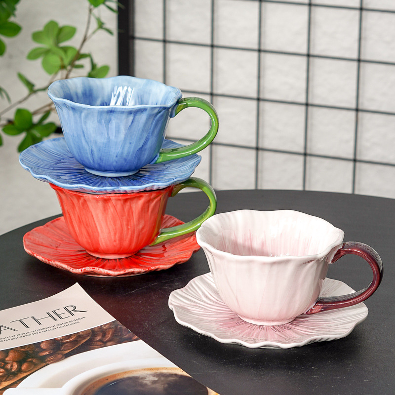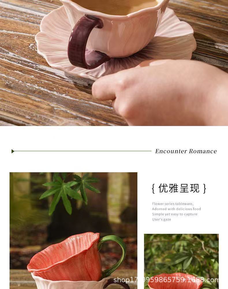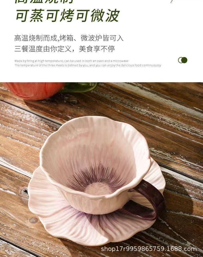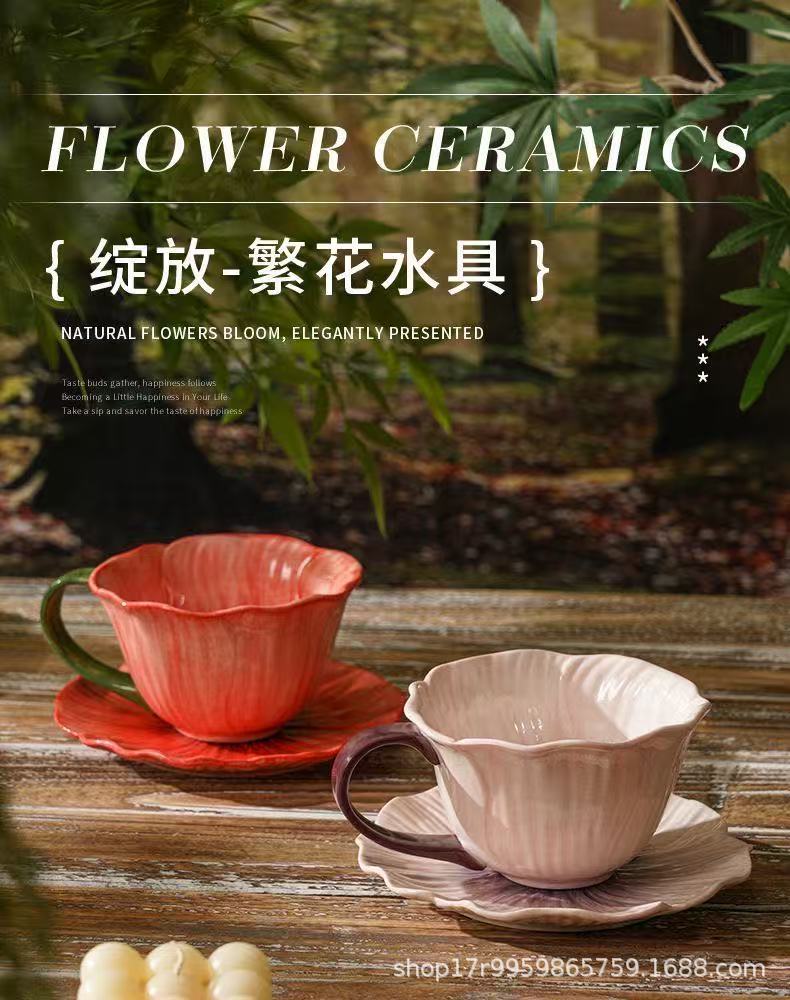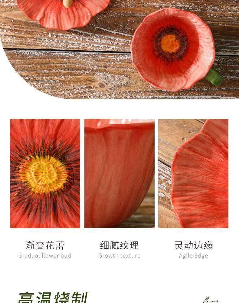 虞美人花朵陶瓷咖啡杯碟创意高颜值家用早餐牛奶杯办公室下午茶杯