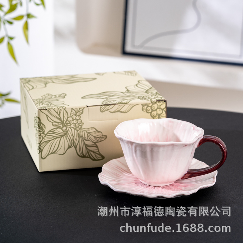 花瓣咖啡杯碟套装绝美咖啡杯特别好看的杯子女设计感陶瓷下午茶杯