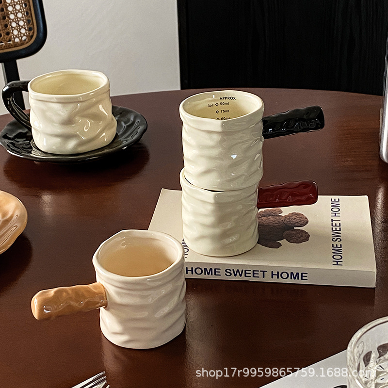 Ins高颜値コーヒー小ミルクカップスケール付きミルク缶エスプレッソ抽出カップセラミック計量カップハンドル付きミルクポット