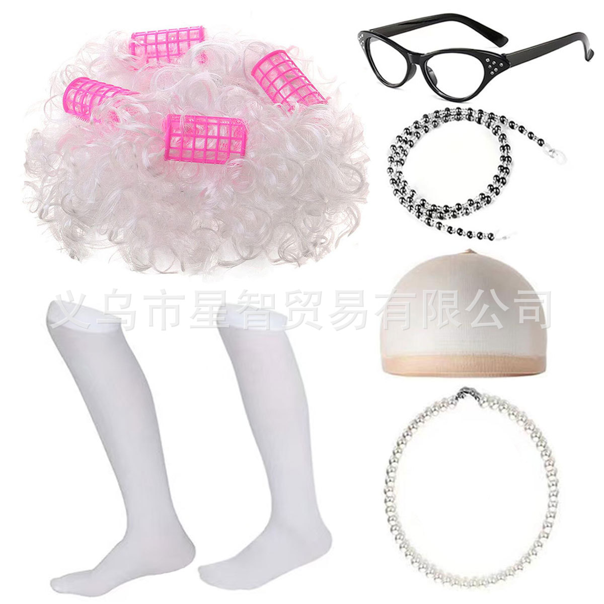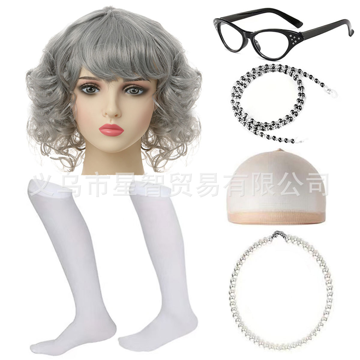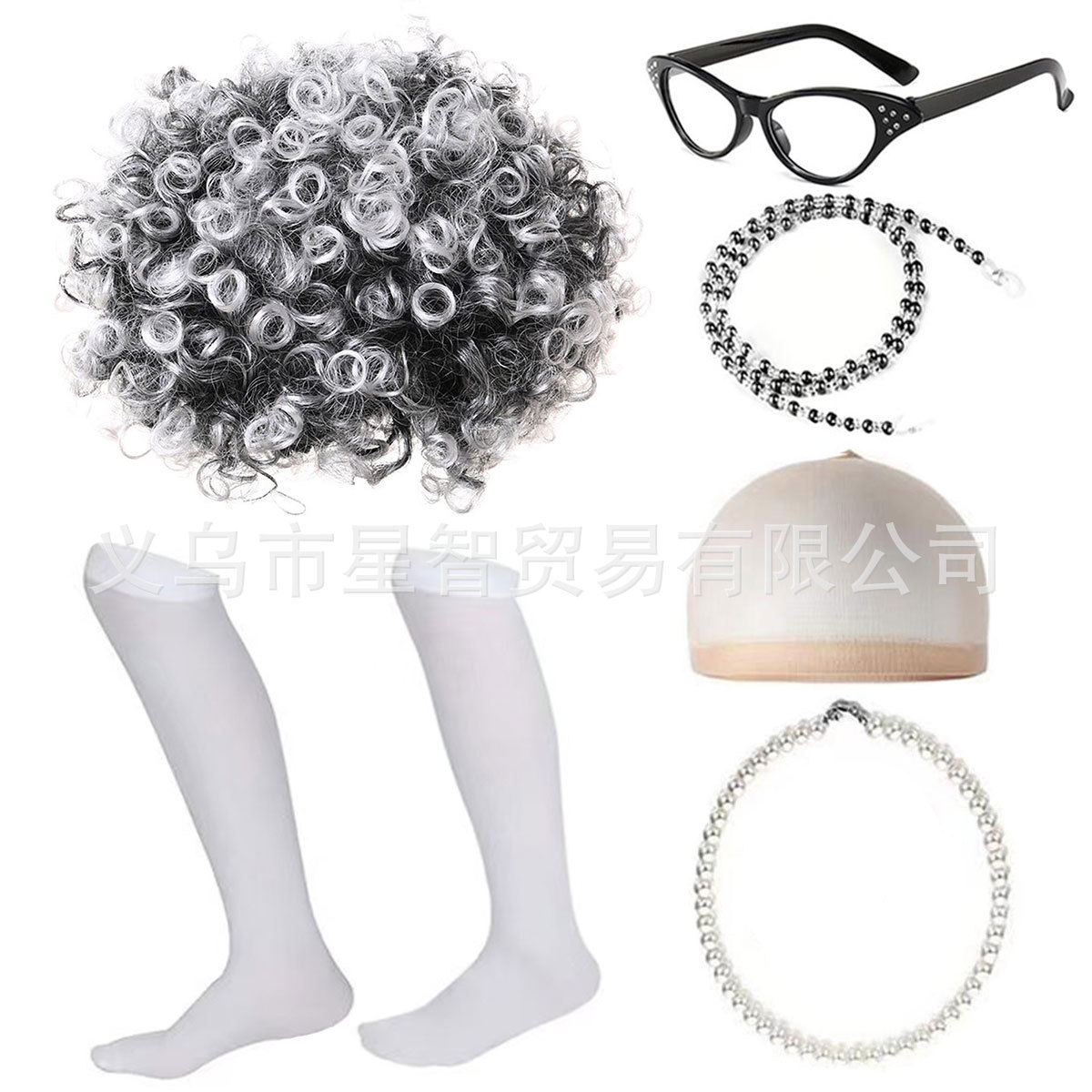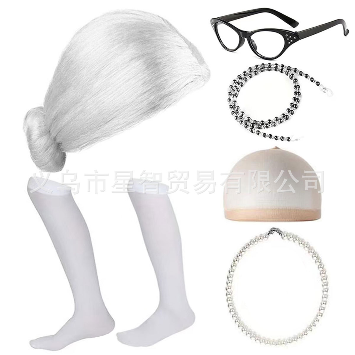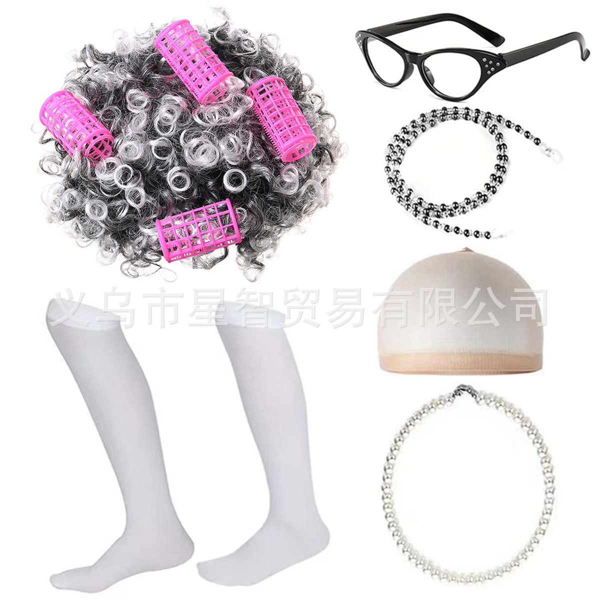 跨境老婆婆假发头套cos老年老奶奶假发装扮亚马逊老太婆假发套装