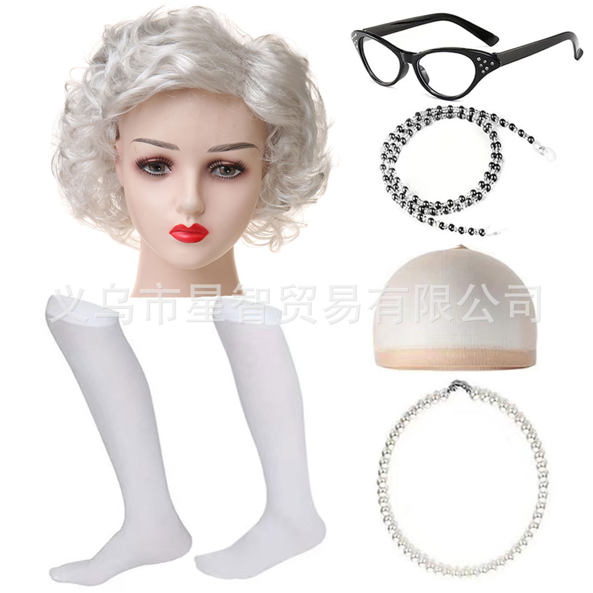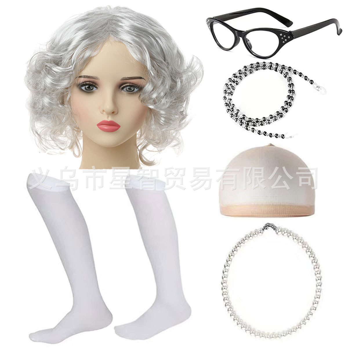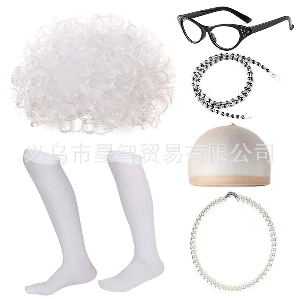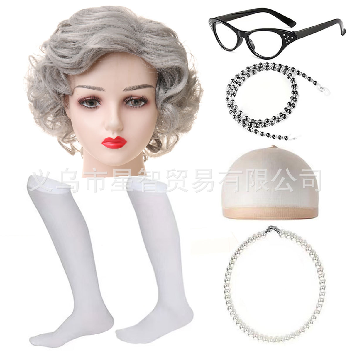 跨境老婆婆假发头套cos老年老奶奶假发装扮亚马逊老太婆假发套装