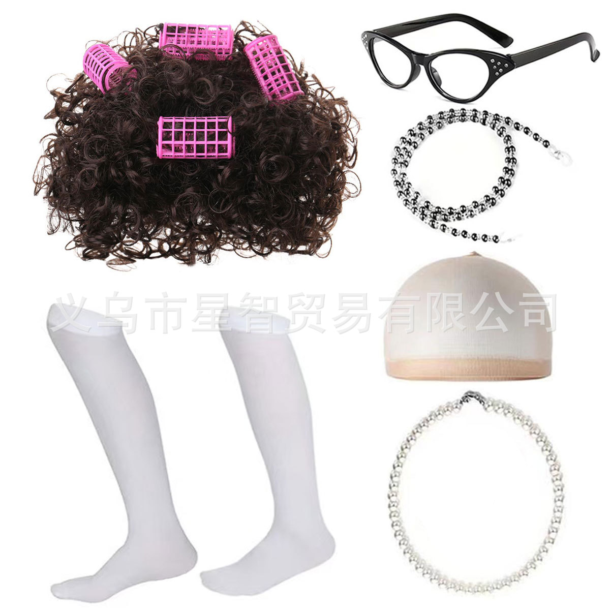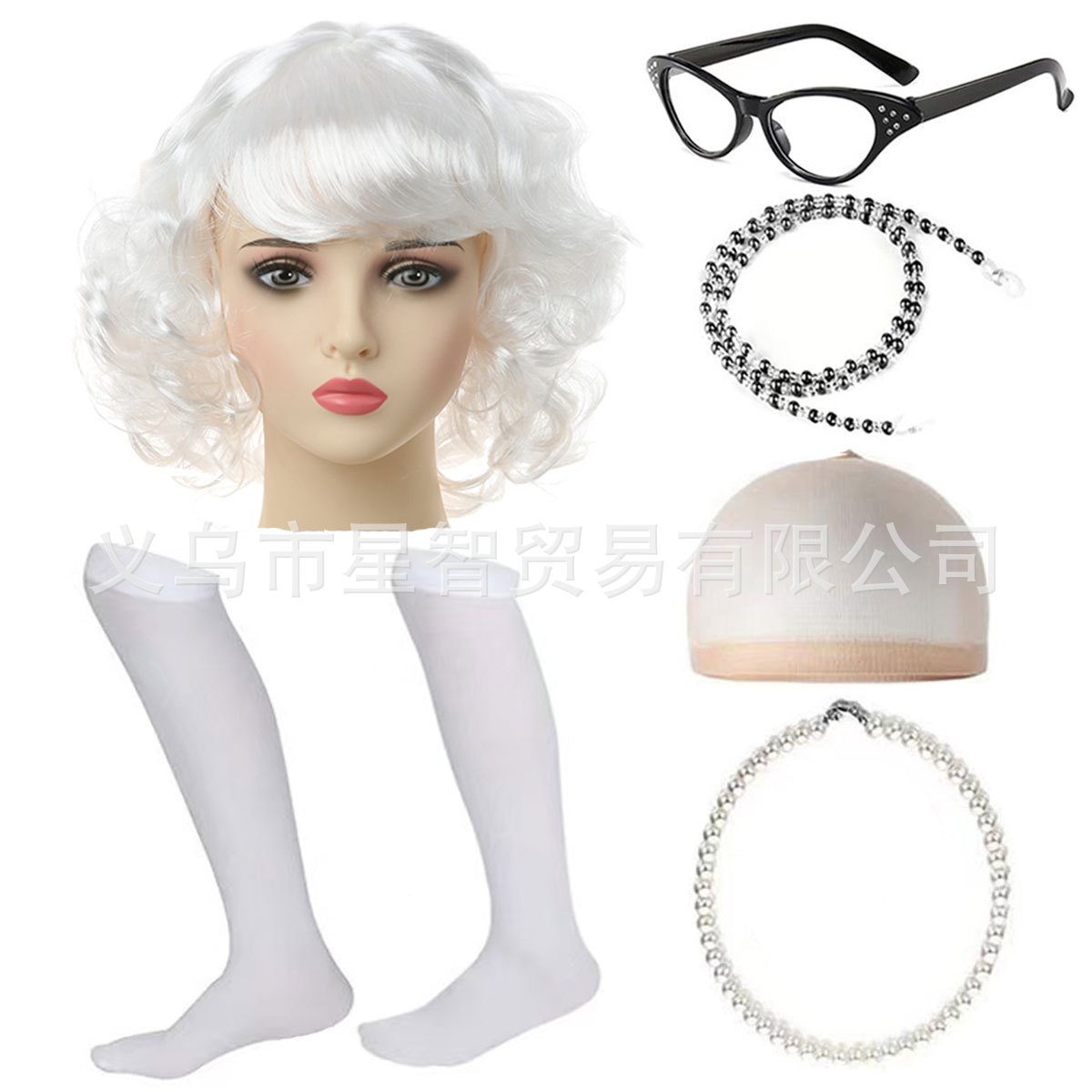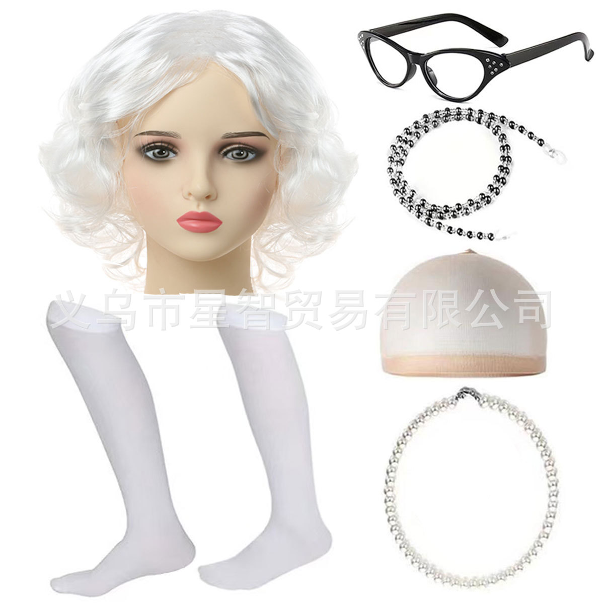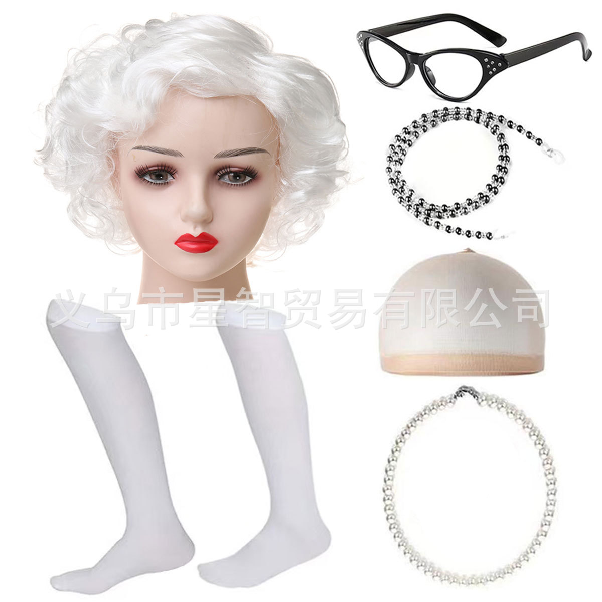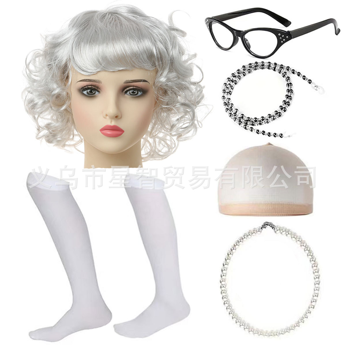 跨境老婆婆假发头套cos老年老奶奶假发装扮亚马逊老太婆假发套装