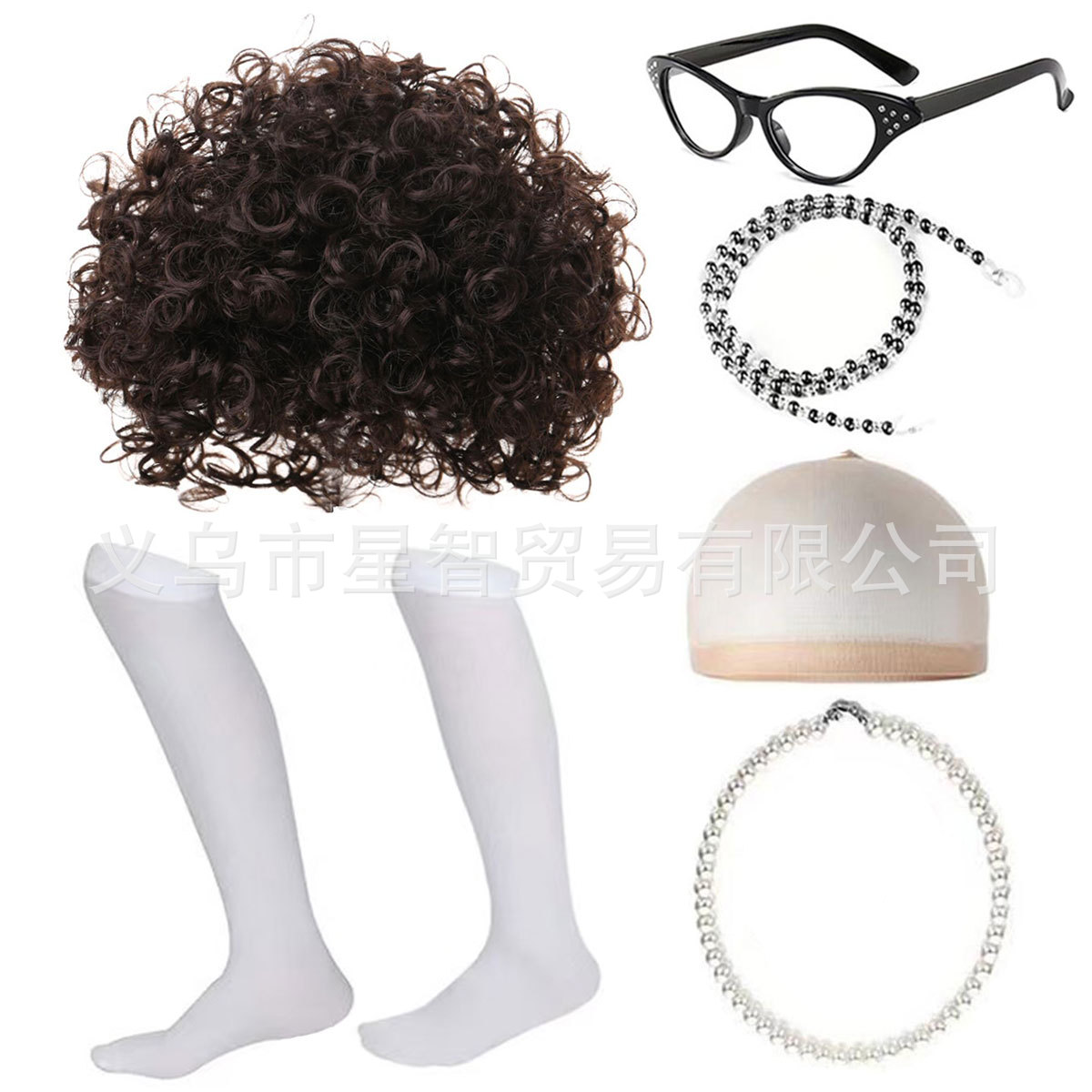 亚马逊热销 老爷爷老奶奶cos假发中老年人小品老婆婆装扮假发套装