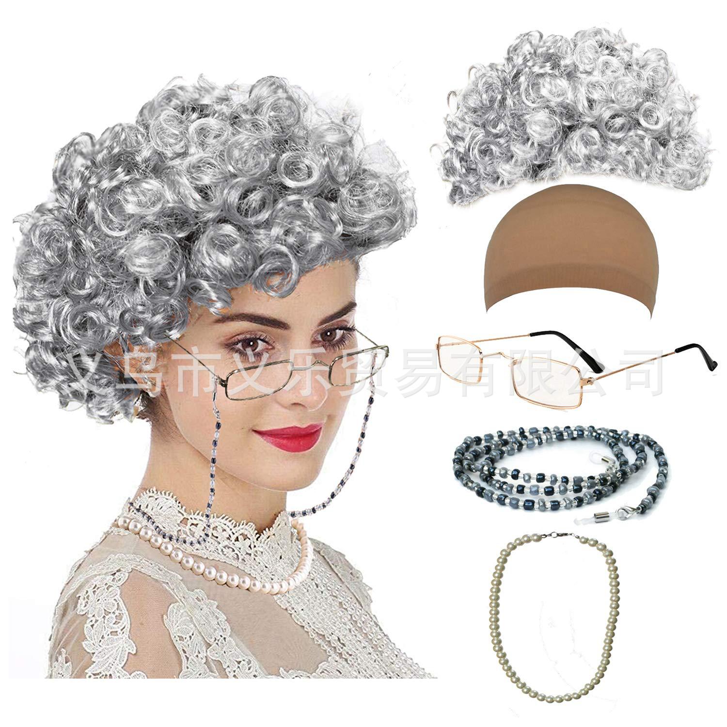 アマゾンの人気のあるおばあさんのかつらcosおじいさんのおばあさんのかつらのショーはかつらのセットを装います。