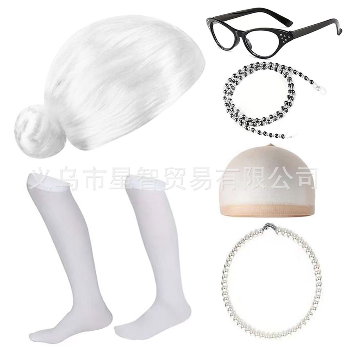 アマゾンの祝日のおばあさんのかつらCOS老人のおばあさんのスカーフの道具はパーティーのスーツを装います。