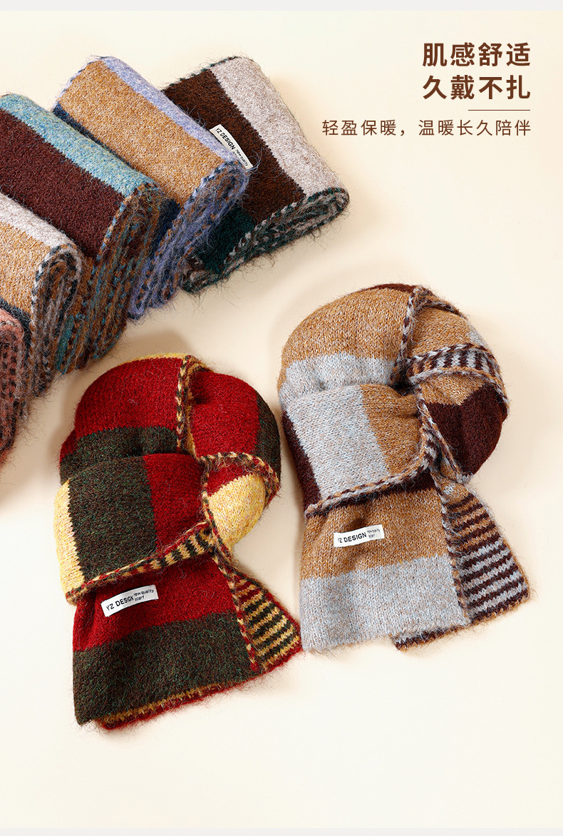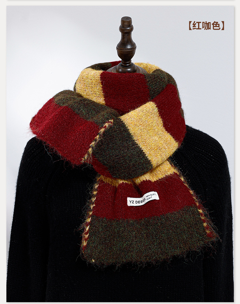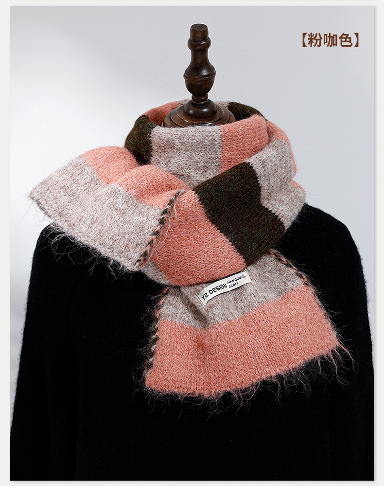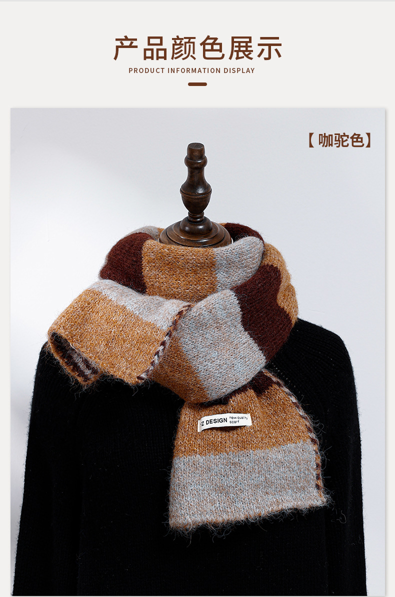 氛围感拼色围巾女款2025新款秋冬高级感针织毛线加厚百搭围脖批发