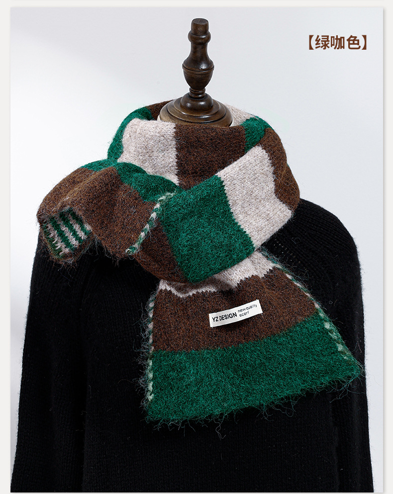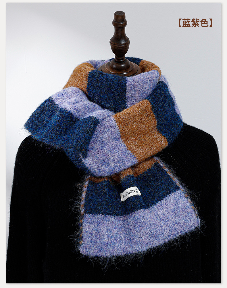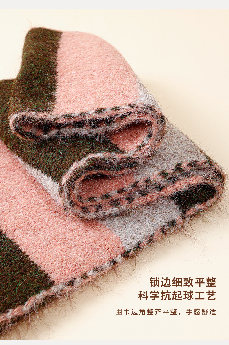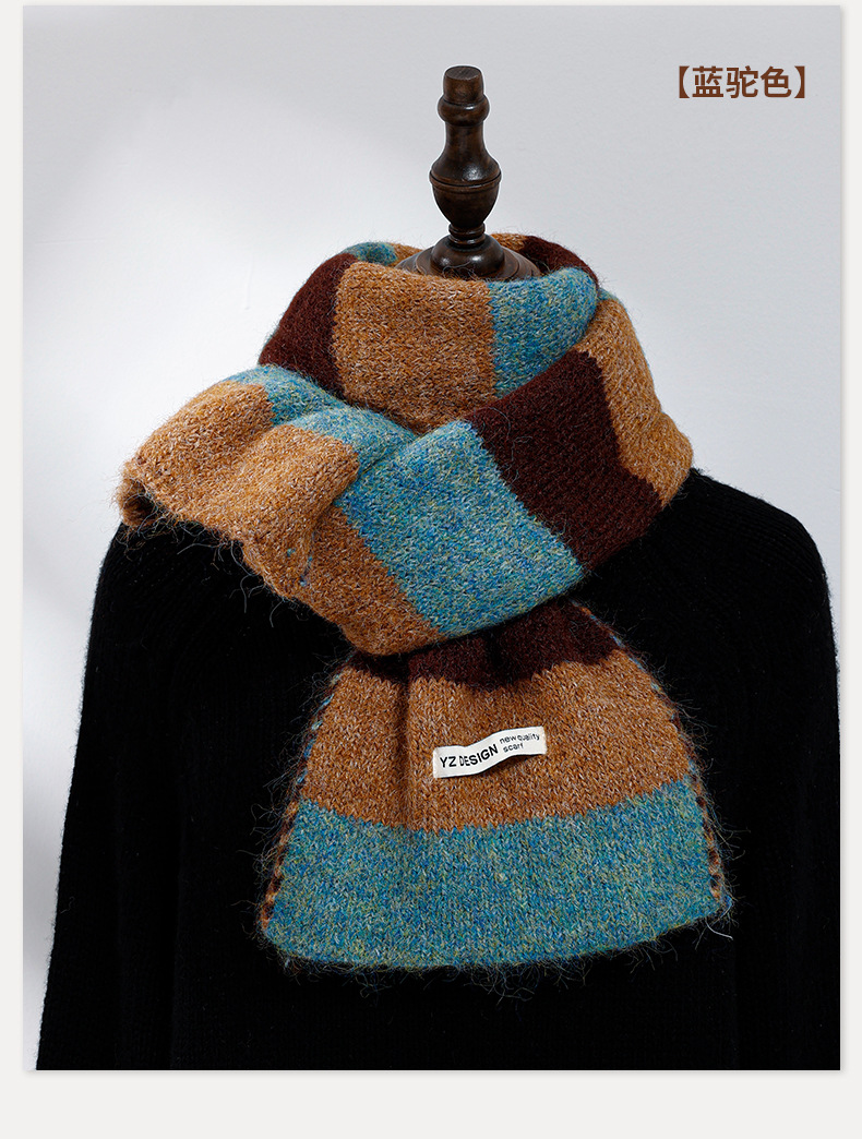 氛围感拼色围巾女款2025新款秋冬高级感针织毛线加厚百搭围脖批发