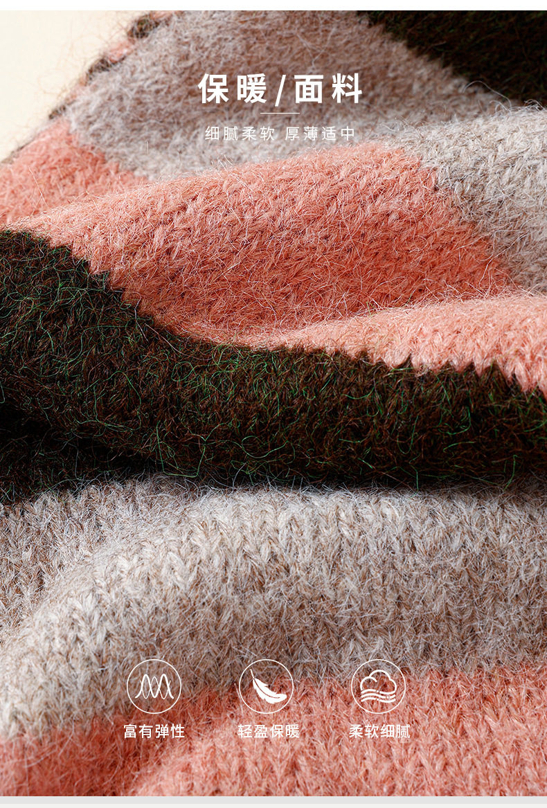 费尔岛风复古针织羊毛围巾女秋冬季高级感撞色韩版氛围感保暖围脖