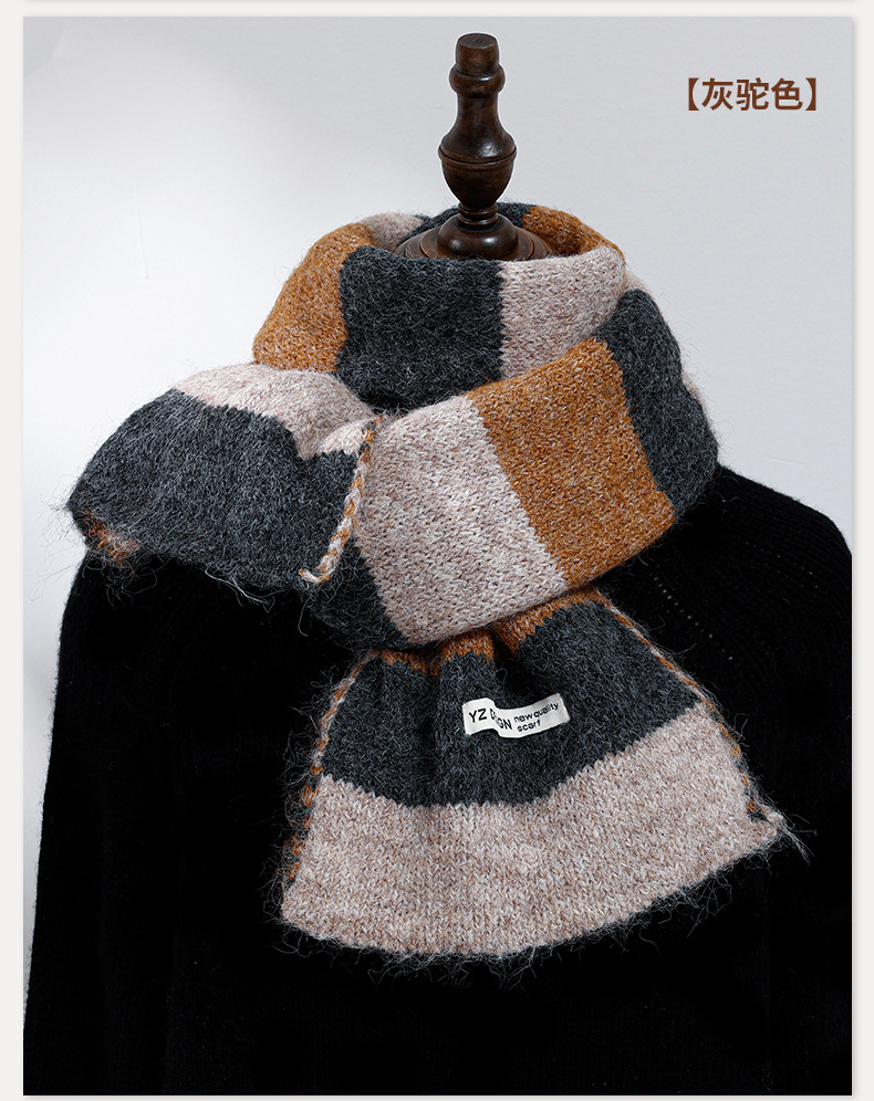 韩系氛围感灰色条纹针织围巾女冬季复古百搭加厚保暖披肩护颈围脖