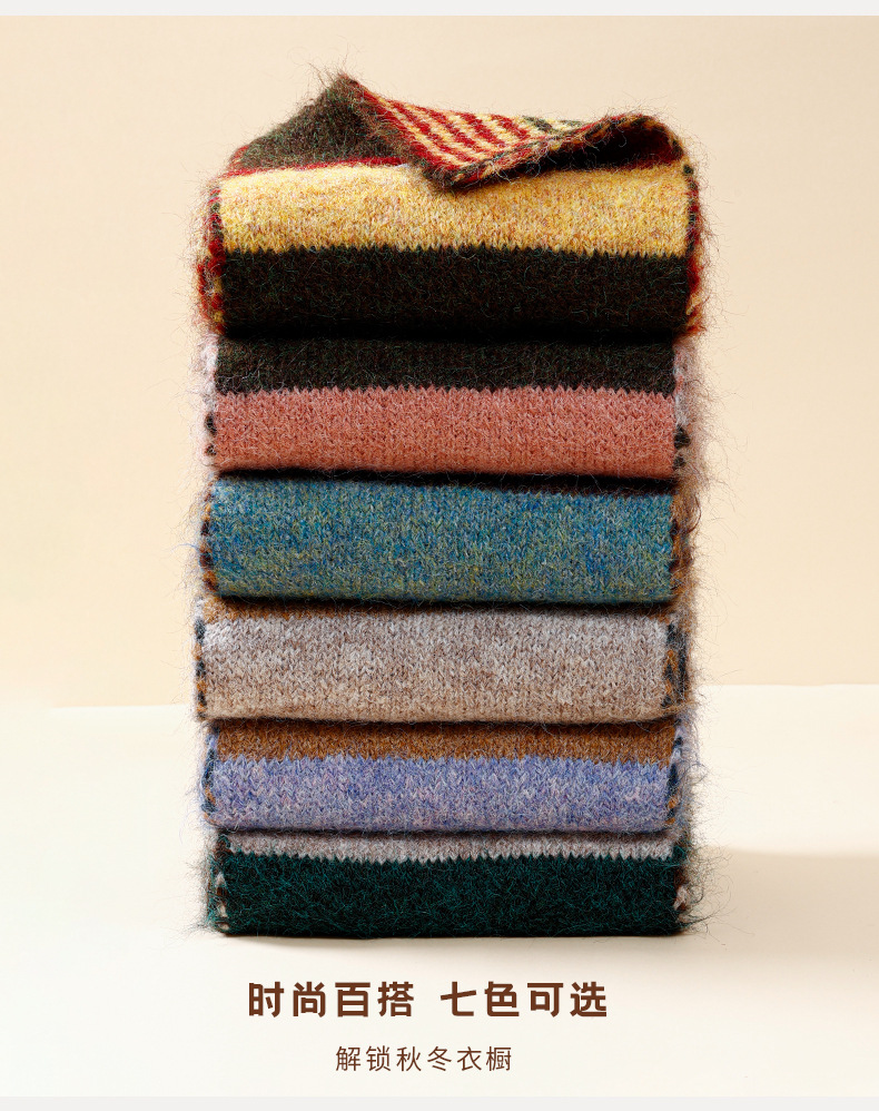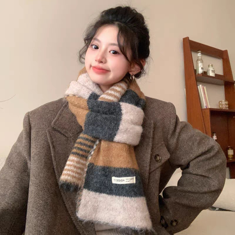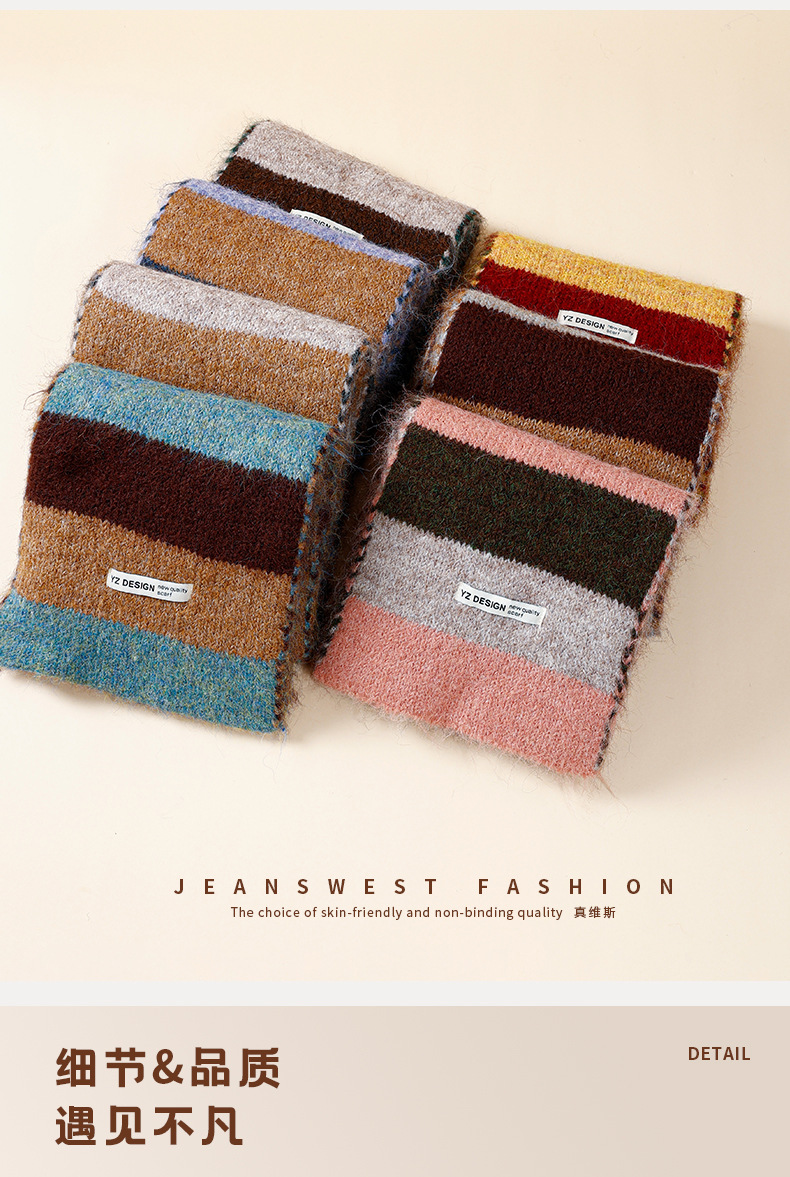含羊毛韩系秋冬氛围感针织围巾女加绒软糯条纹防寒保暖情侣围脖男