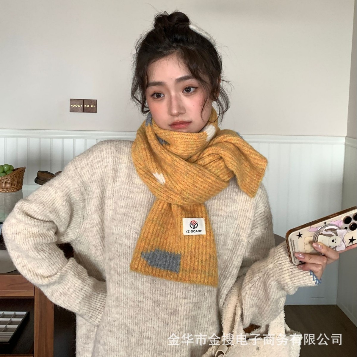 フェア島カレー色のニットマフラー女性2024年冬韓国系雰囲気感保温百合学生首保護マフラー