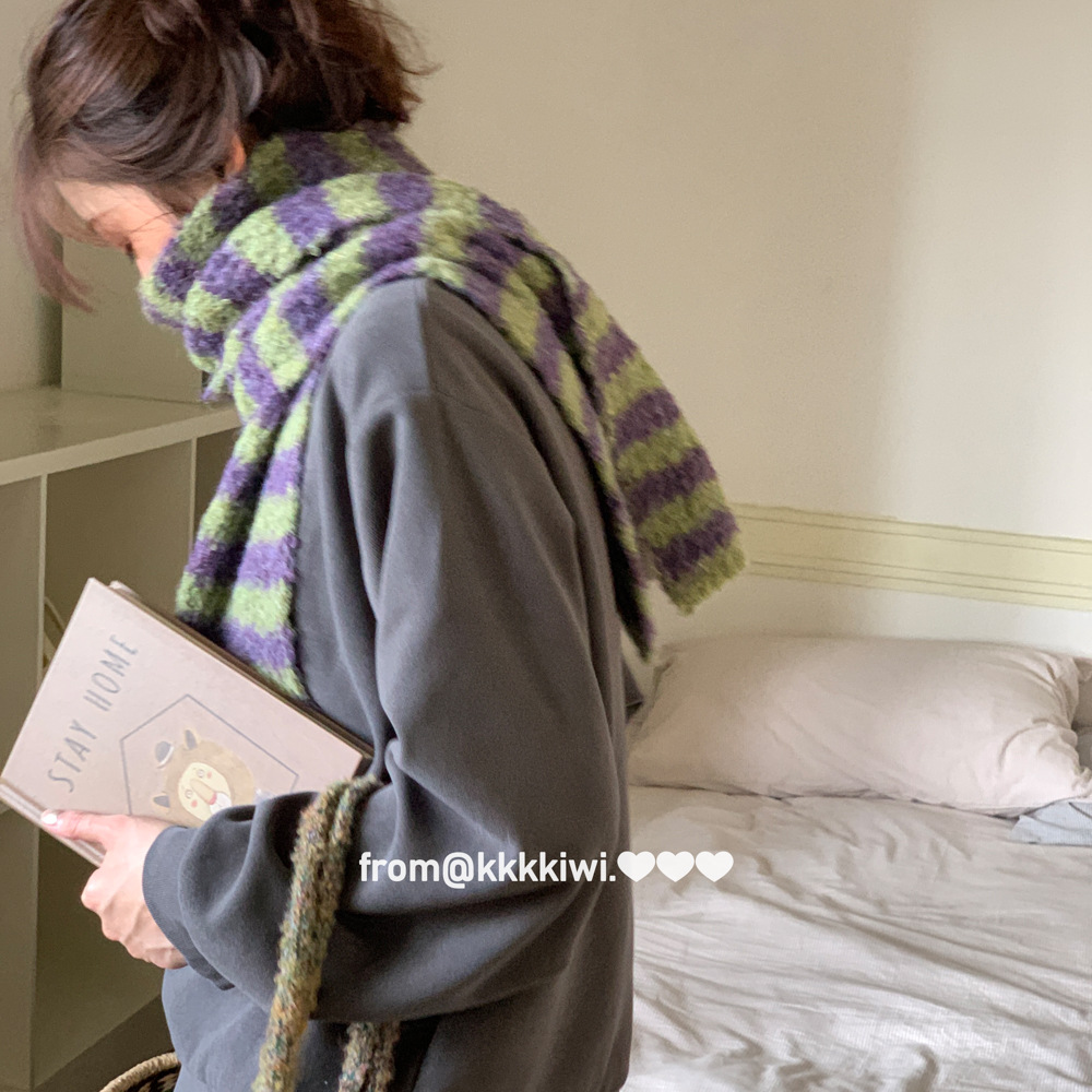 韓国版insは色の縞のマフラーの女性の秋冬の柔らかいモチモチの毛糸のメリヤスの保温のマフラーの学生の百合のカップルの金にぶつかります。
