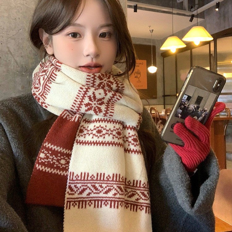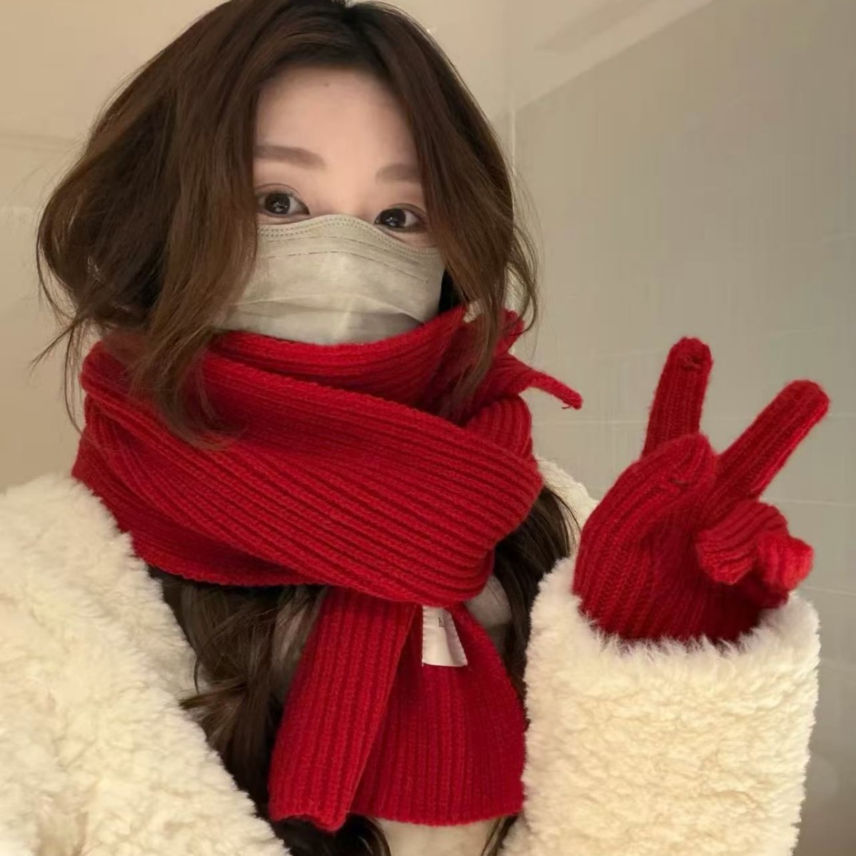 韓劇欧尼の赤いマフラーの女性の冬の韓国版のクリスマスのメリヤスの本命年の2024の新型の厚い保温のマフラー