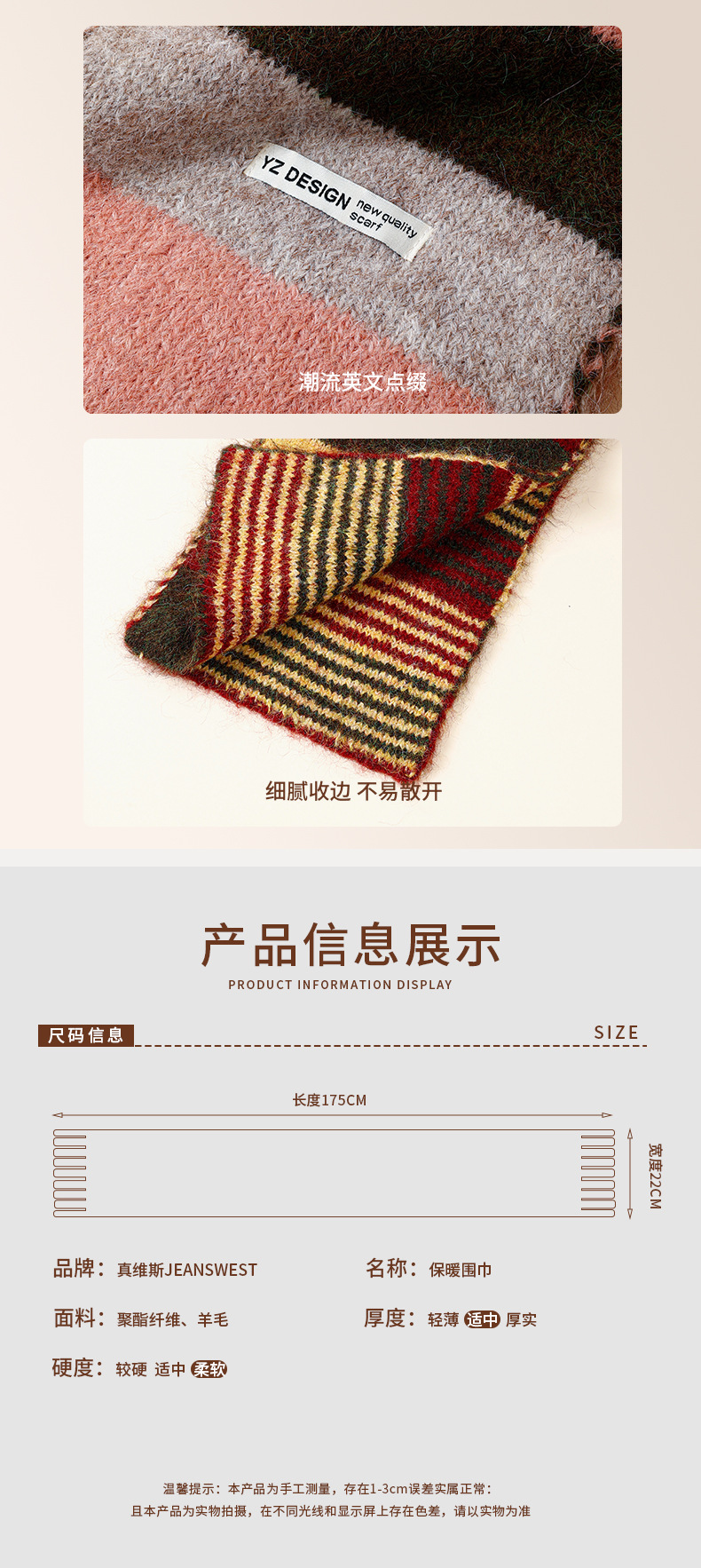 真维斯韩系氛围感围巾女冬季羊毛混纺百搭高级感针织毛线保暖围脖