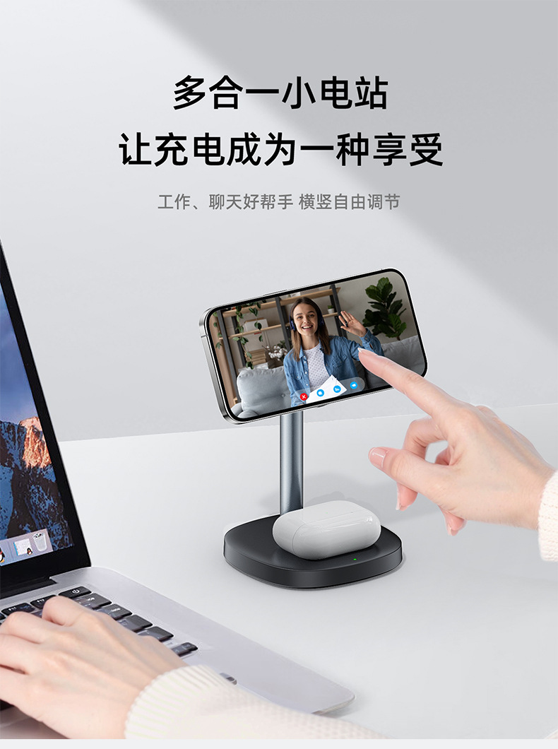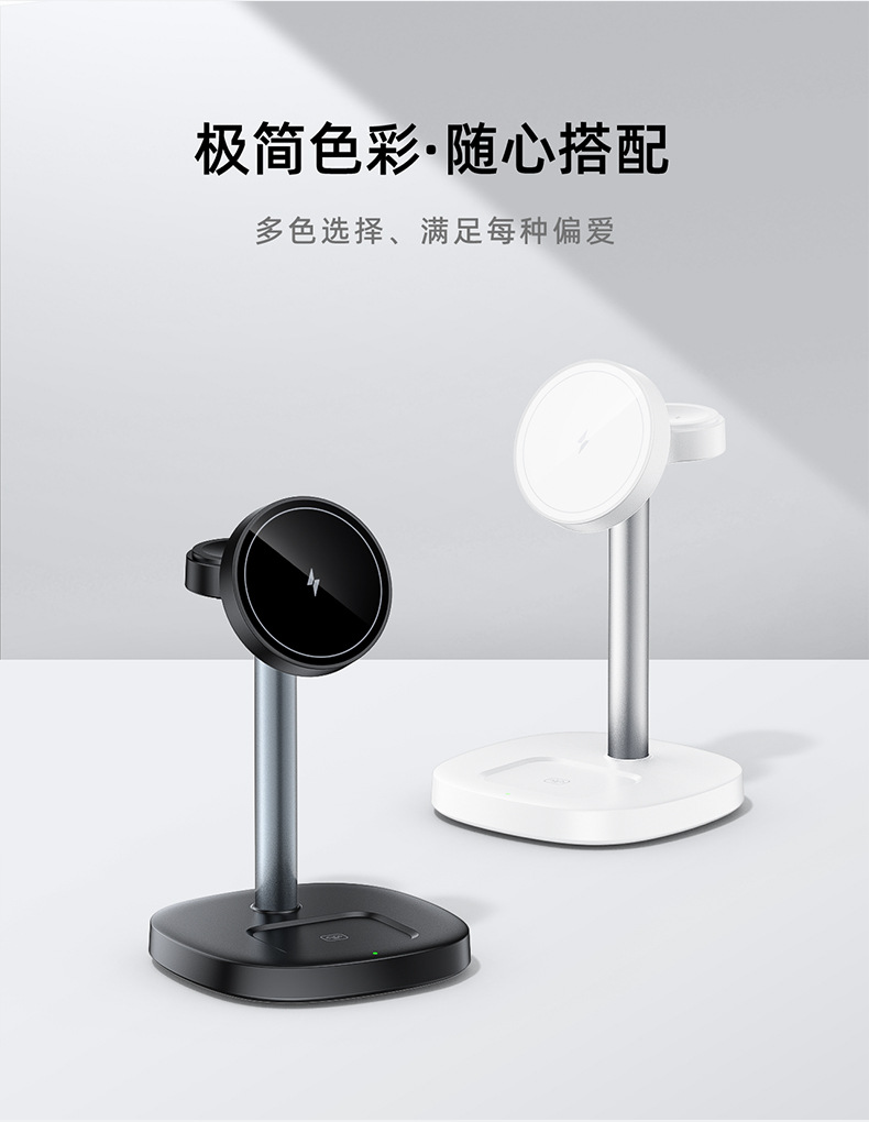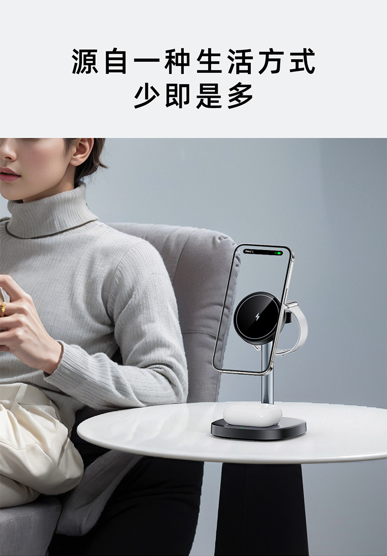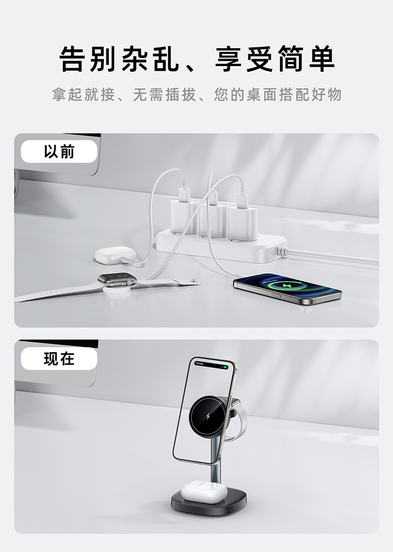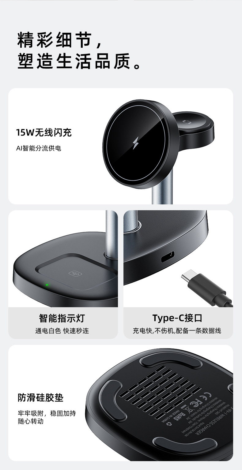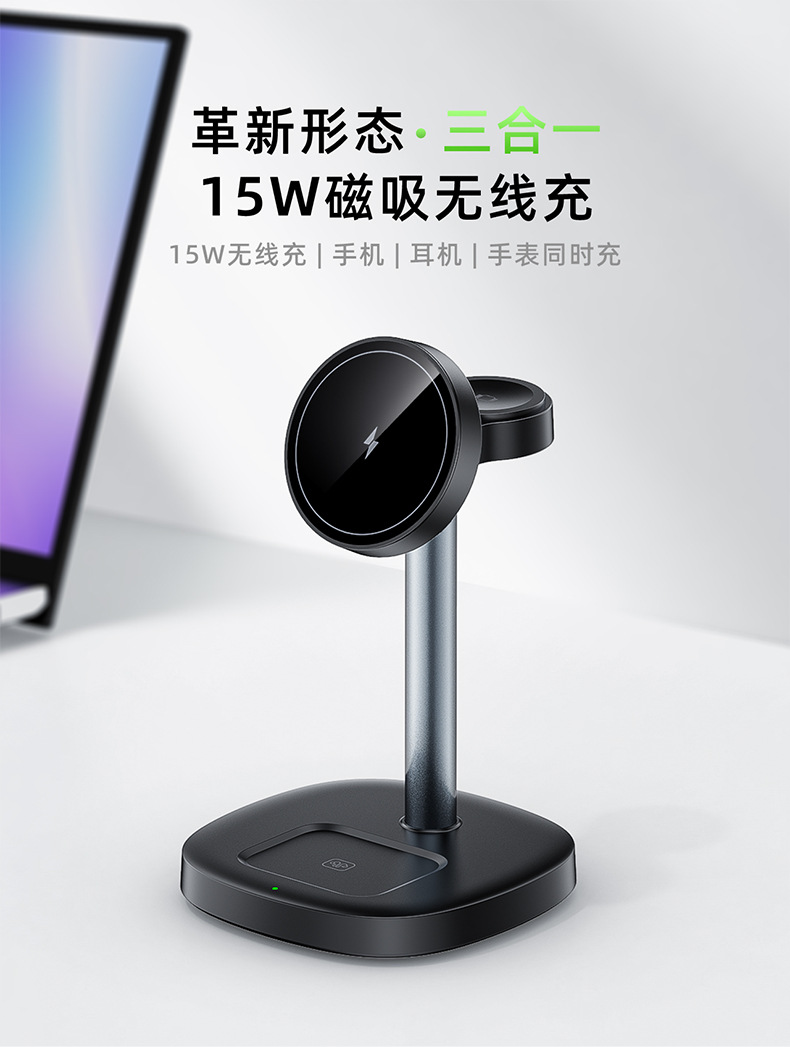 桌面三合一无线充电器15W快充强力磁吸适用苹果充电底座手机支架